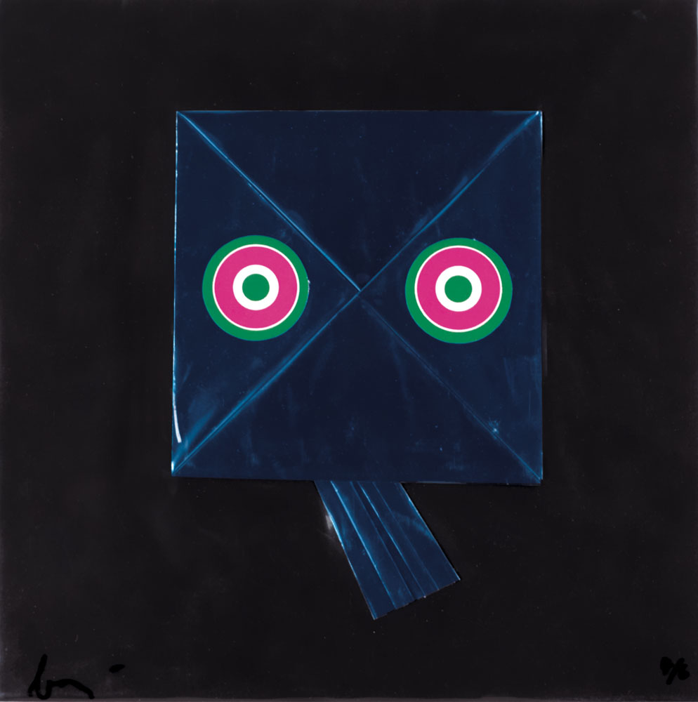 ENRICO BAJ Milano 31/10/1924 - Varese 15/06/2003 Tète argentée, 1970 collage su acetato metallizzato su cartoncino nero entro plastica cm. 38x38, esemplare 4/6, firma in basso a sinistra, Editione Rousseau, Ginevra, pubblicato su "Multipli di Baj", Comune di Milano, Ripartizione Cultura, Raccolta d'Arte al numero 23.
