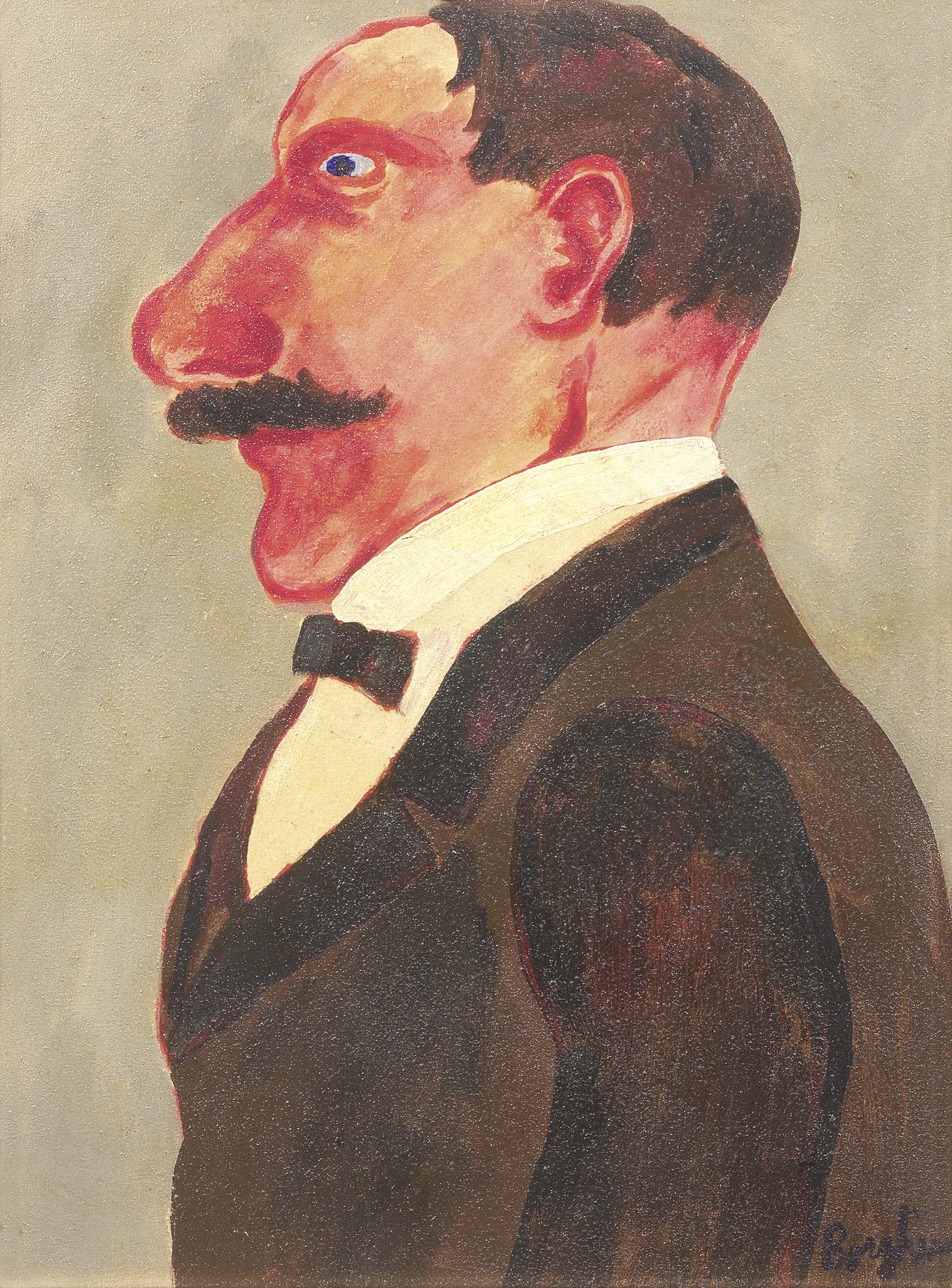Franz Borghese Roma 1941 - 2005 Figura di profilo Olio su tela, cm. 40x30,5 Firma in basso a destra: Borghese; firma al verso sulla tela: Franz Borghese.