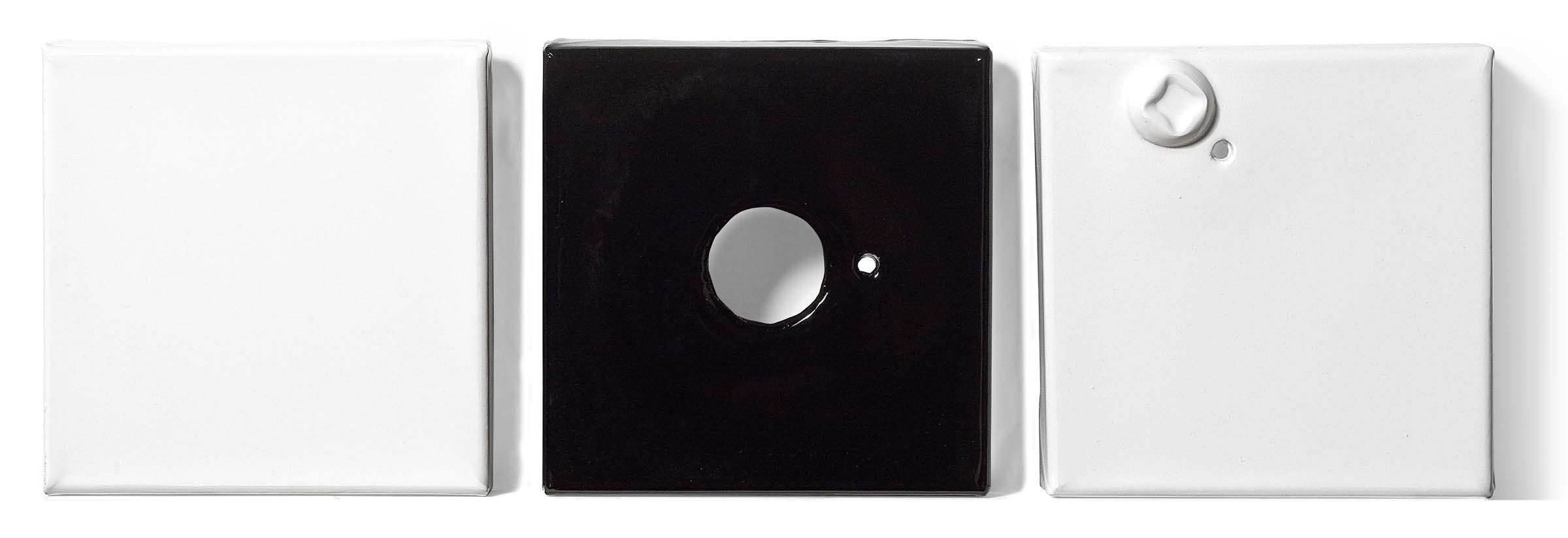 Beatrice Gallori Montevarchi (Ar) 1978 Senza titolo, 2015 Tecnica mista su tela tesa su tavola, tre elementi, cm. 20x20 ognuno Firma e data al verso di ognuno: Beatrice / Gallori / 2015.