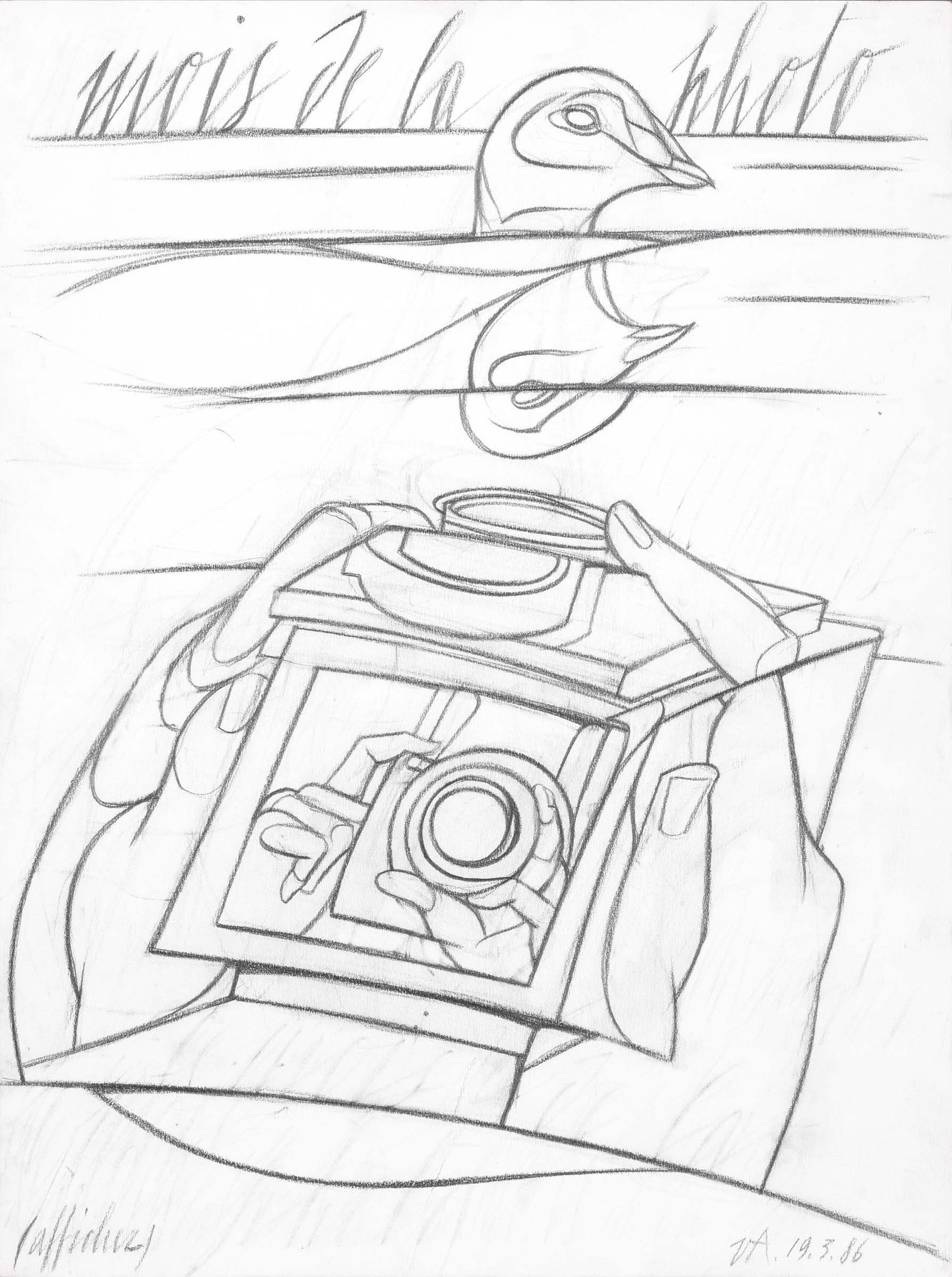 Valerio Adami Bologna 1935 Mois de la photo, 1986 Carboncino su carta, cm....