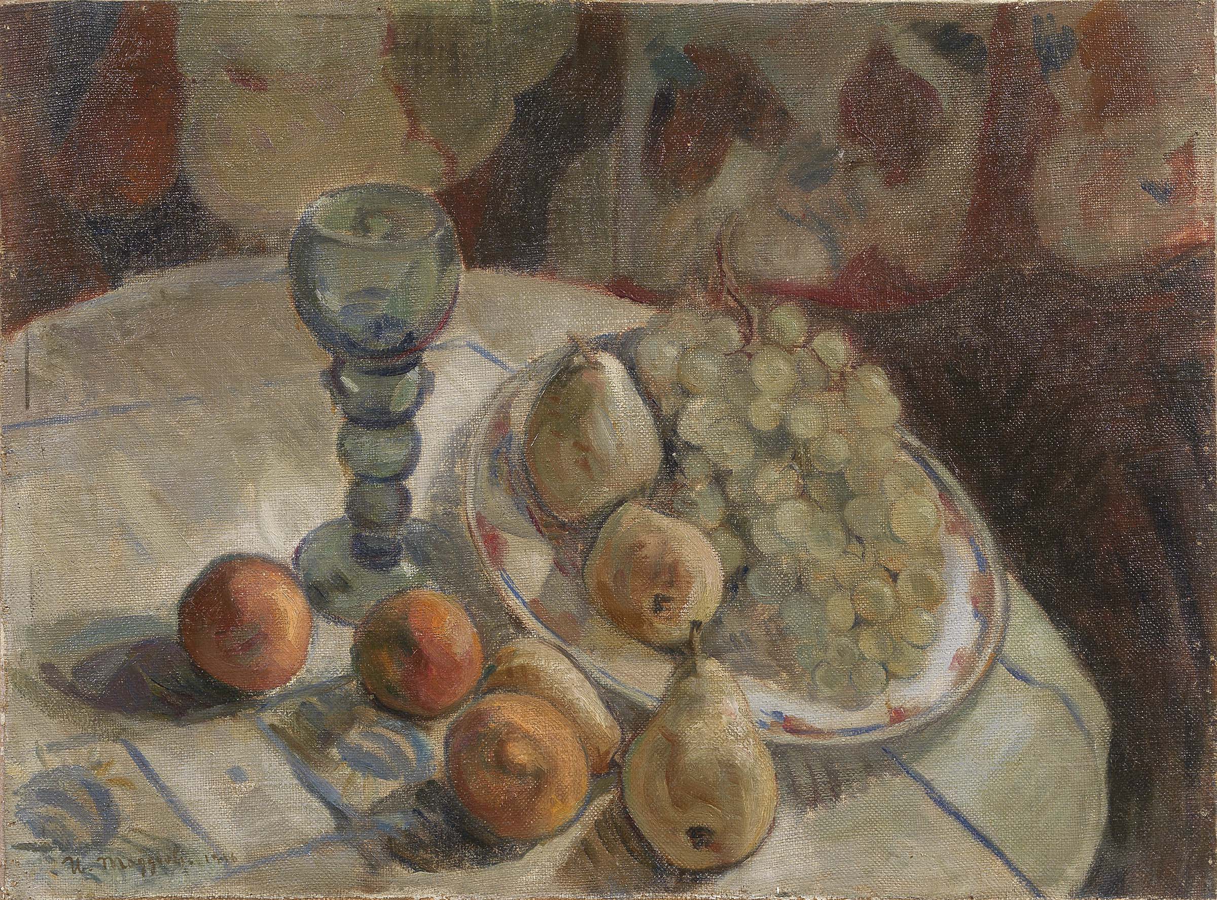 Umberto Moggioli Trento 1886 - Roma 1919 Natura morta, 1916 Olio su tela applicata su tavola, cm. 56,5x76 Firma e data in basso a sinistra: U. Moggioli 1916. Bibliografia: Umberto Moggioli. Magia del silenzio, Edizioni Trart, Dolo, 2008, p. 154, n. 528.