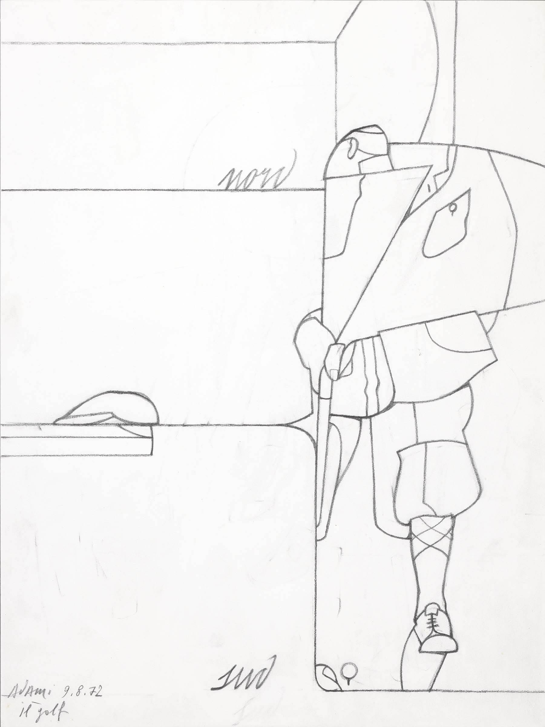 Valerio Adami Bologna 1935 Il golf, 1972 Matita su carta, cm. 48x36 Firma, data e titolo in basso a sinistra: Adami 9.8.72 / Il golf; al verso numero: VA/318/72.