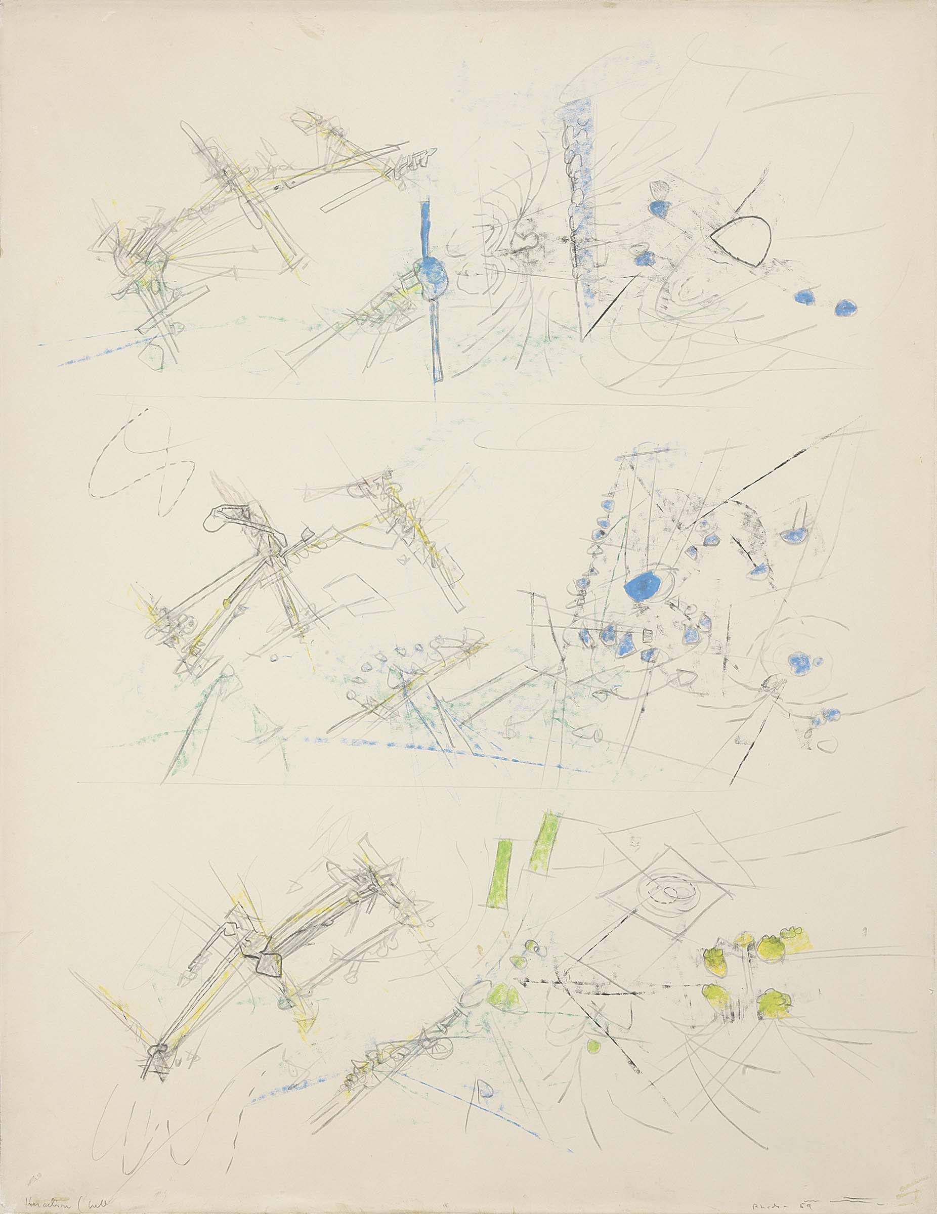 Sebastian Echaurren Matta Santiago del Cile 1911 - Tarquinia (Vt) 2002 Heraclion, 1959 Matita e pastello su carta, cm. 65x50 Data e firma in basso a destra: [...] 59 Matta, titolo in basso a sinistra: Heraclion. Al verso su una tavola di supporto: etichetta e timbro Galleria d'Arte Galatea, Torino, con n. 0579: etichetta Lattuada Studio, Milano, con n. 3346. Certificato su foto di Paul Nicholls, Milano; certificato con foto Archives de l'Oeuvre de Matta, Tarquinia, 13 gennaio 2001, con n. D59/29.