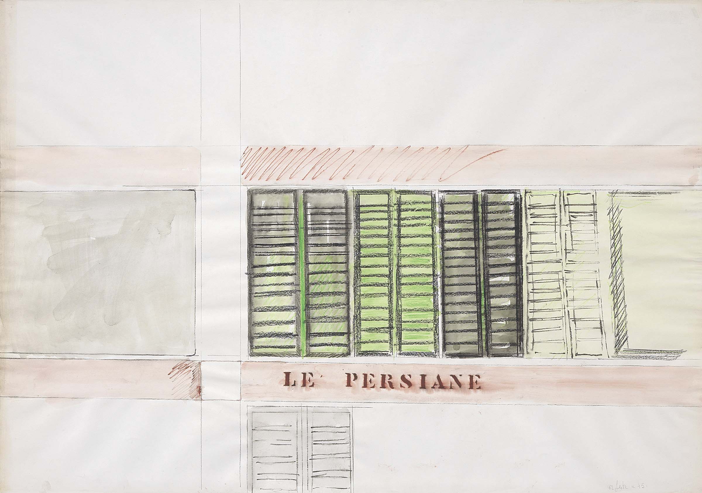 Tano Festa Roma 1938 - 1987 Le persiane, 1962 Tecnica mista su cartoncino, cm. 70x100 Data e firma in basso a destra: '62 Festa n. 45. Certificato su foto Studio Soligo, Roma, archivio n. RMSC 62/700120.