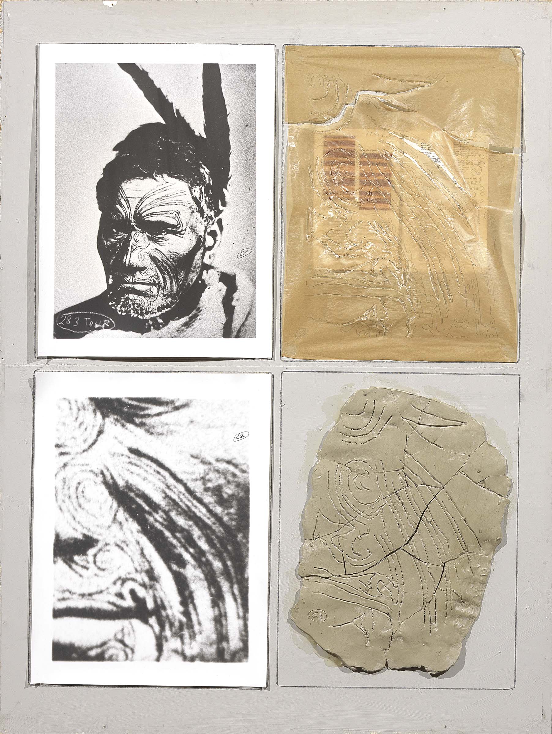 Claudio Costa Tirana 1942 - Genova 1995 I modelli - La pelle incisa dei Maori, 1974 Tecnica mista su tavola, cm. 94x71 Firma, data e titolo al verso: Claudio Costa '74 / I modelli / "La pelle incisa dei Maori": timbro La Bertesca, Düsseldorf. Storia: Giò Arte, Mestre; Collezione privata Esposizioni: Homini & Domini, Il corpo nell'arte fotografica, Villorba, Libreria Lovat, 5 - 24 maggio 2012, cat. p. 19, fig. 9, illustrato; Sguardi sul tempo. Percorsi nella fotografia d'autore, Treviso, Casa dei Carreresi, 15 giugno - 11 agosto 2013, cat. n. 144, illustrato.
