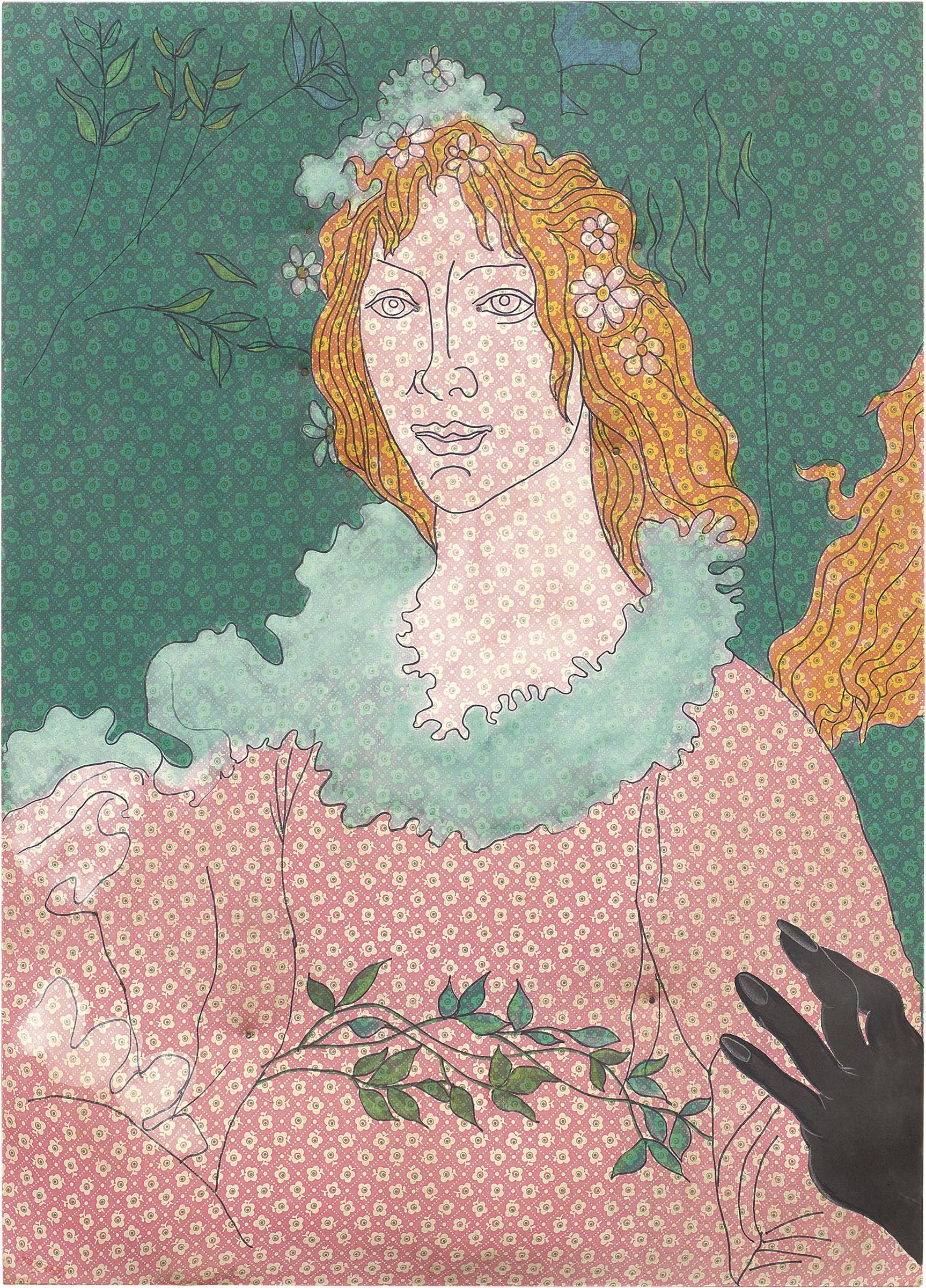 Cesare Tacchi Roma 1940 Primavera (Ritratto), 1966 Acrilico su tessuto a rilievo applicato su tavola, cm. 127x89 Titolo, firma e data al verso: "Primavera" / (Ritratto) / Cesare Tacchi 1966 / Sandro Botticelli n. 2. Foto autenticata dall'artista con etichetta Studio Soligo, Raccolta delle Opere d'Arte, Roma, con n. RMS 66120043.
