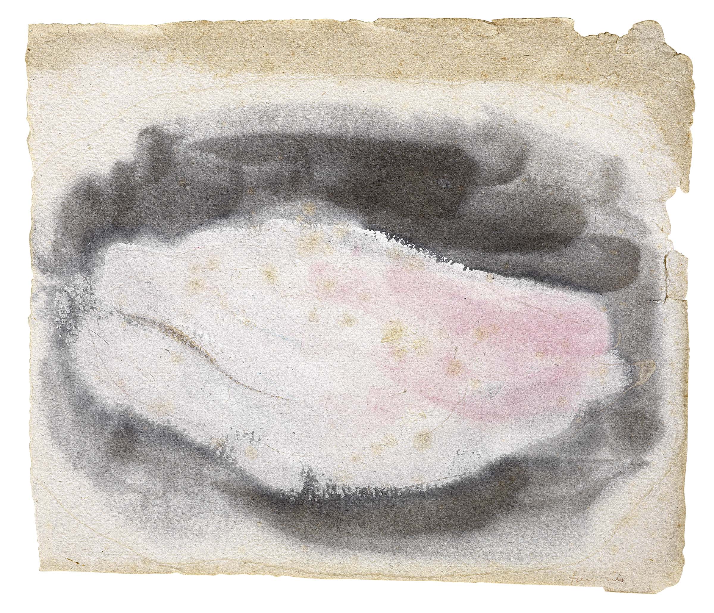 Jean Fautrier Parigi 1898 - Châtenay-Malabry 1964 Senza titolo, (1946) Gouache su carta, cm. 24x28,5 Firma in basso a destra: Fautrier. Al verso, su un cartone di supporto: cartiglio con dati dell'opera (datata 1944) e n. F 214: etichetta Galerie Berès, Paris. Storia: Galerie Jeanne Castel, Parigi; Collezione privata Certificato su foto Galerie Jeanne Castel,  Parigi, 2 luglio 1984, con n. J.C.F.B. II3. Esposizioni: Sogni di carta. Dipinti, disegni e incisioni dei maestri del '900, Riccione, Galleria d'arte moderna e contemporanea Villa Franceschi, 25 giugno - 11 settembre 2011, cat. p. 58, illustrato.