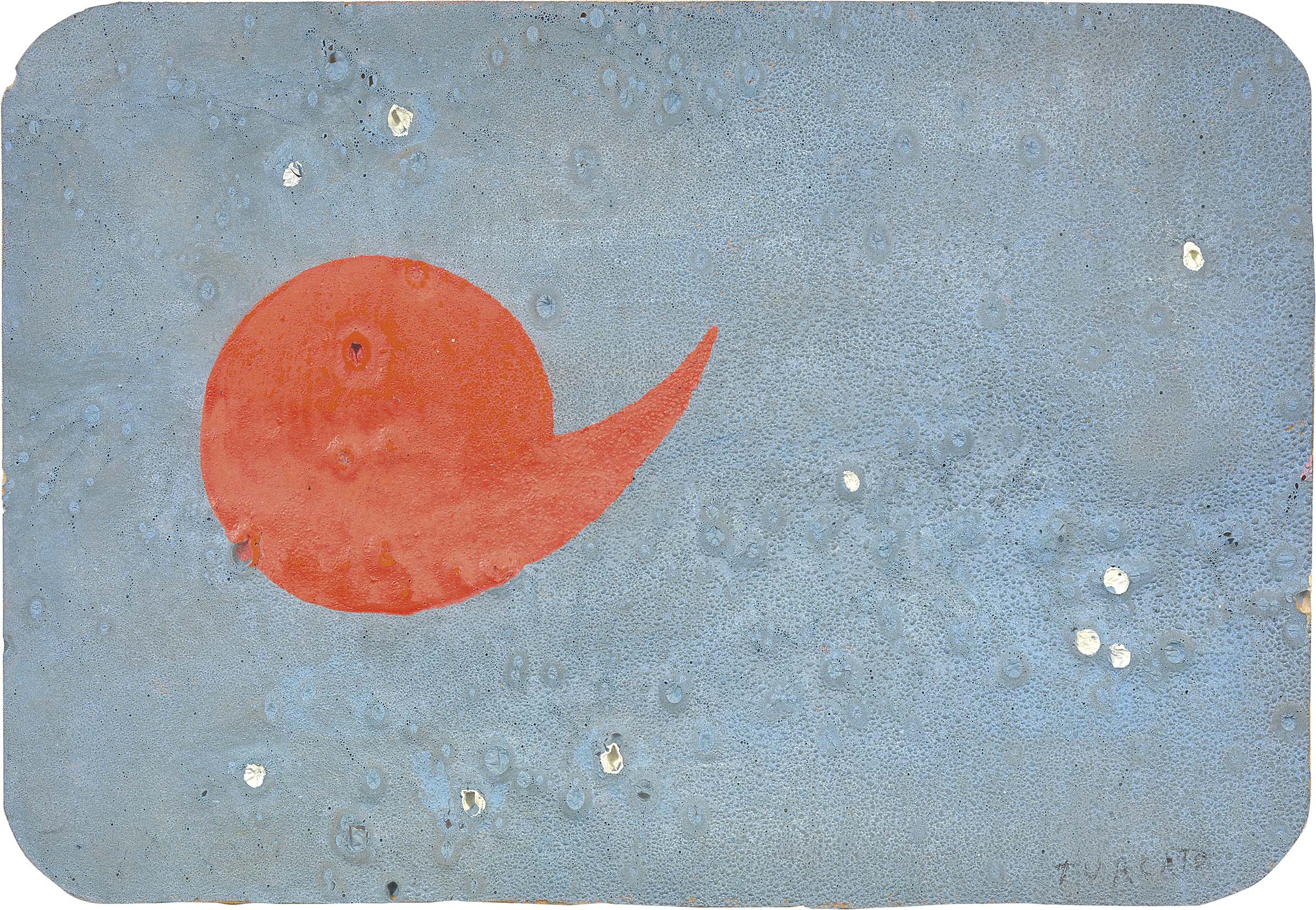 Giulio Turcato Mantova 1912 - Roma 1995 Superficie lunare, 1968 Olio su gommapiuma applicata su tavola, cm. 40,7x59,5 Firma in basso a destra e al verso: Turcato: numero d'archivio EP210308BM10QB. Certificato su foto Archivio Giulio Turcato, con n. EP210308BM10QB. L'opera è incollata al vetro della cornice.