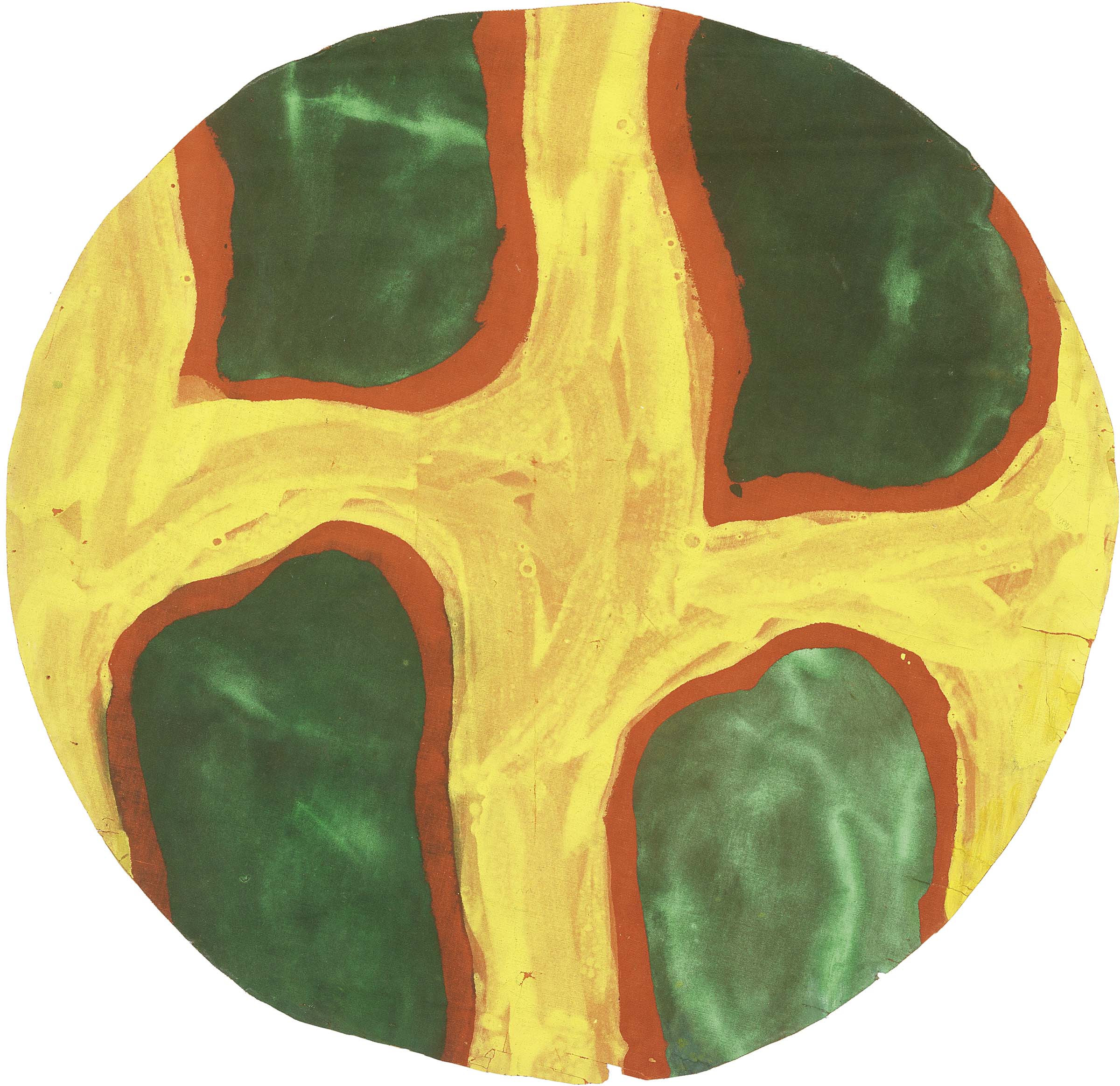 Claude Viallat Nimes 1936 Senza titolo, 1990 Acrilico su tela, cm. 74 ø Dati dell'opera entro un'etichetta allegata.