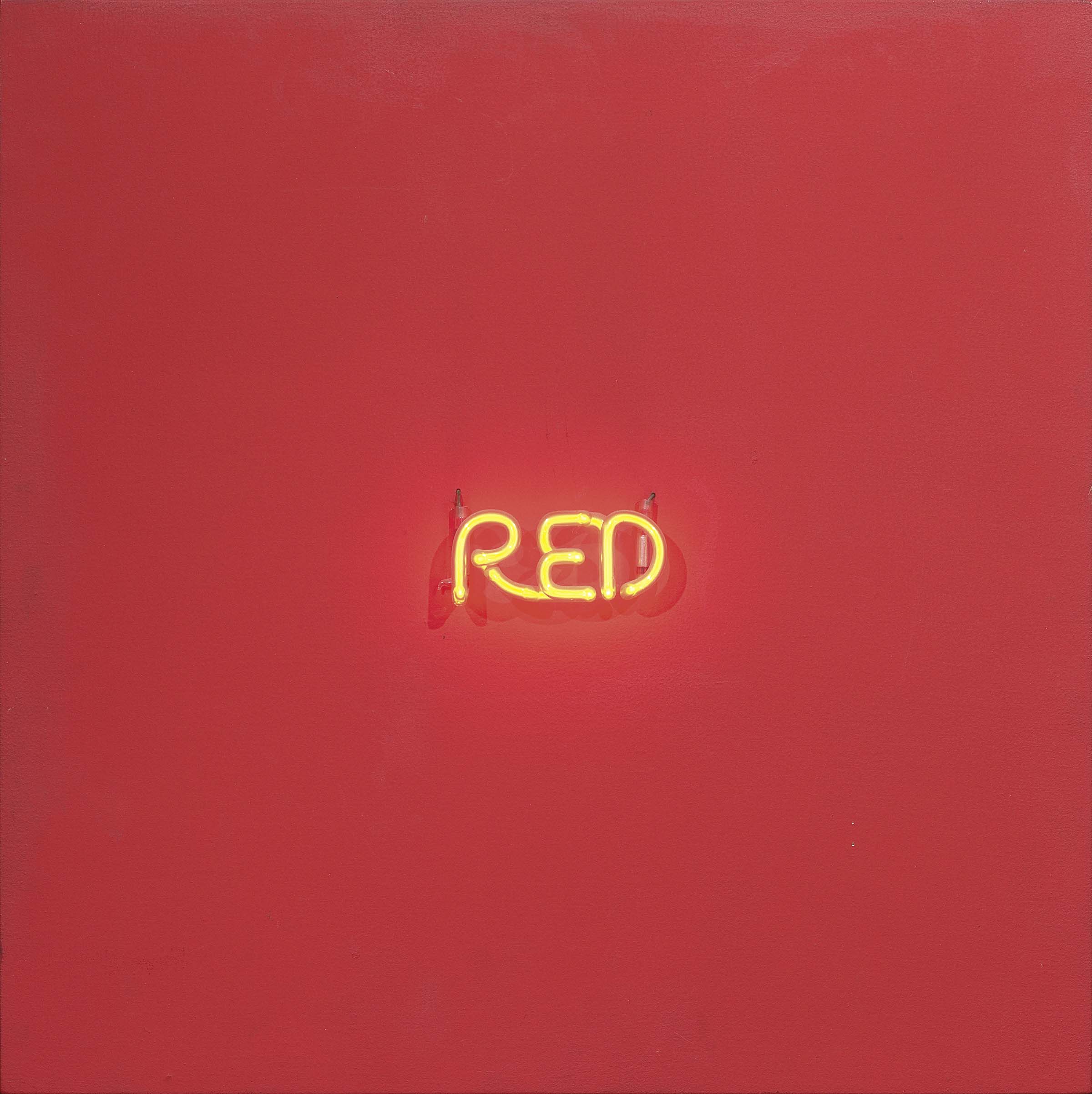 Maurizio Nannucci Firenze 1939 Red, 1970 Acrilico e neon su tela applicata su tavola, cm. 60x60 Firma, titolo e data al verso: Maurizio Nannucci / "Red" 1970.