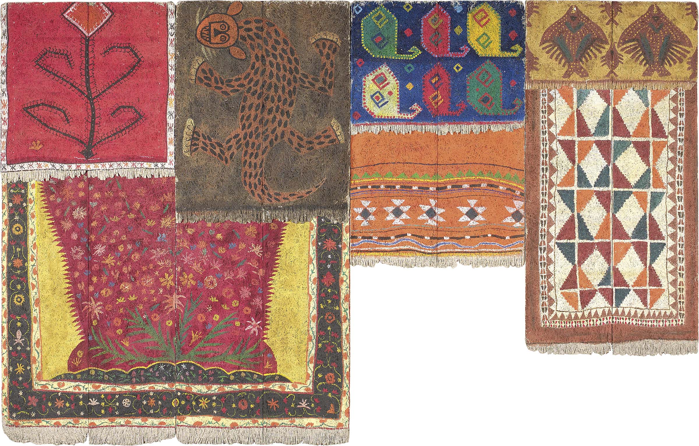 Aldo Mondino Torino 1939 - 2005 Tappeti stesi, 1986 Olio su eraclite, quattro...