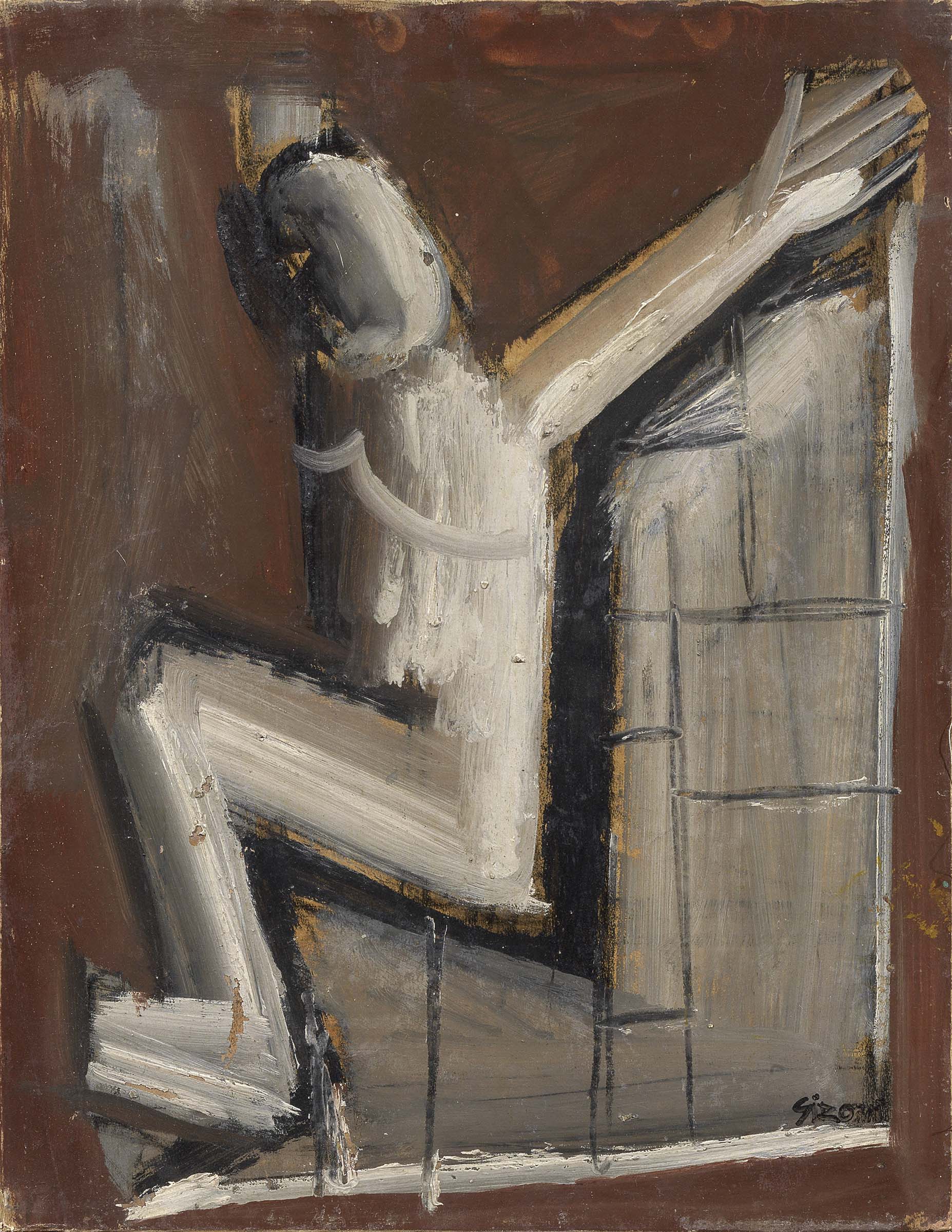 Lot 501 | Mario Sironi Sassari 1885 - Milano 1961 Figura Tempera su carta applicata su...