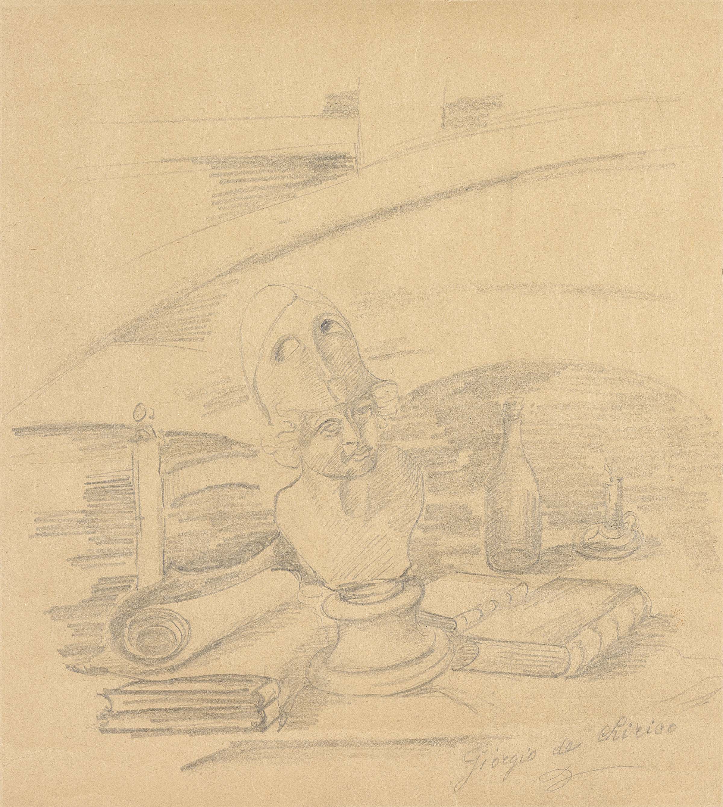 Giorgio de Chirico Volos 1888 - Roma 1978 La soffitta del filosofo, 1953-54 Matita su carta, cm. 28x25 Firma in basso a destra: Giorgio de Chirico. Certificato su foto di Claudio Bruni Sakraischik, Roma 27 settembre 1982, con n. 112/82. Bibliografia Claudio Bruni Sakraischik, Catalogo Generale Giorgio de Chirico, volume settimo, opere dal 1951 al 1974, Electa Editrice, Milano, 1983, n. 1056.