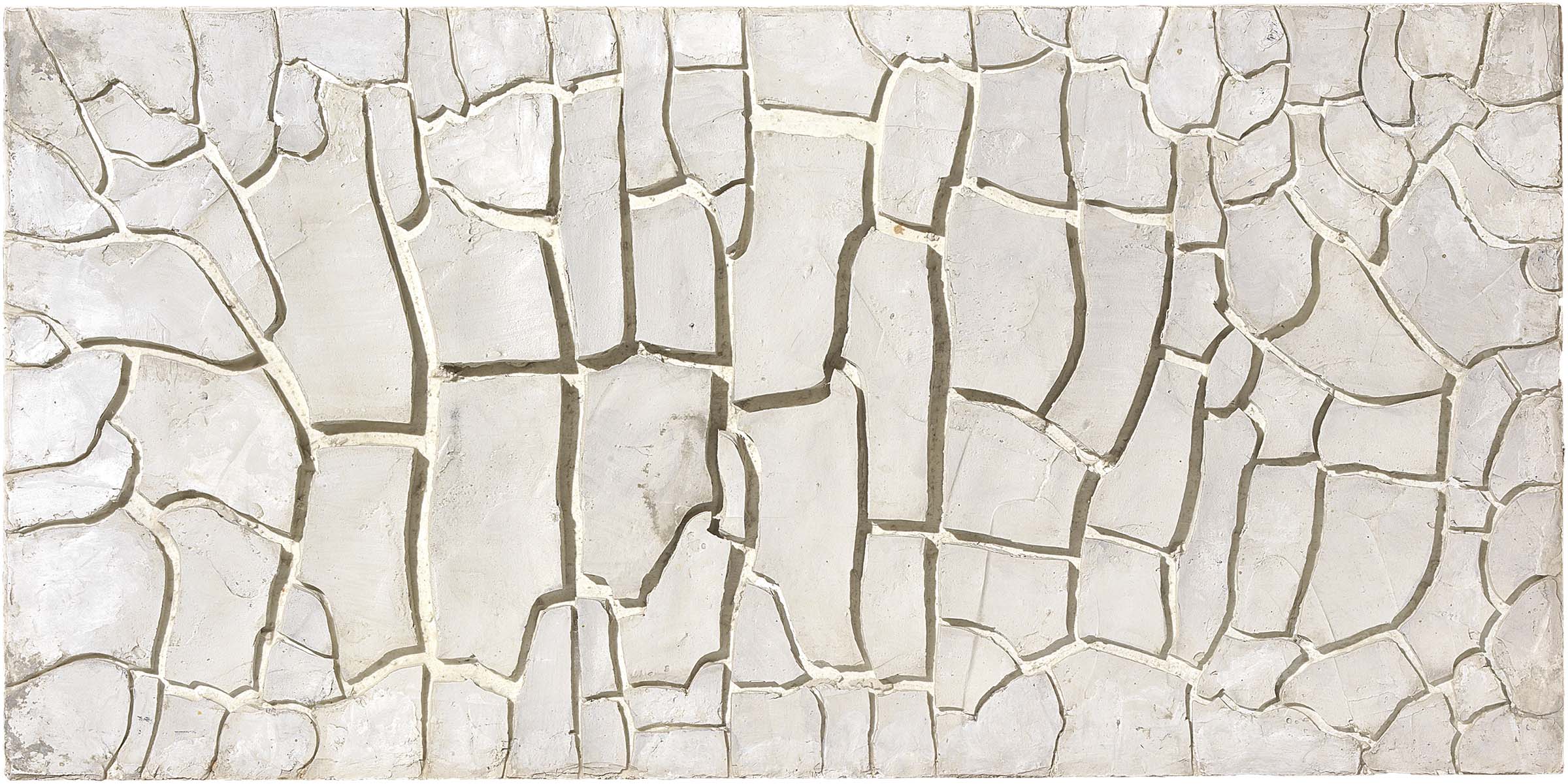 Alberto Burri Città di Castello (Pg) 1915 - Nizza 1995 Cretto bianco, 1974 Caolino e vinavil su tavola, cm. 42x85 Storia Collezione Massimo Baldelli, Citerna; Collezione privata Opera archiviata dalla Fondazione Palazzo Albizzini - Collezione Burri, Città di Castello, 15 ottobre 1996, prot. n. 452-96. Esposizioni I protagonisti, arte italiana nei secoli, Farsettiarte, Cortina d'Ampezzo, 26 dicembre 1996 - 7 gennaio 1997, cat. n. 10, illustrato a colori.