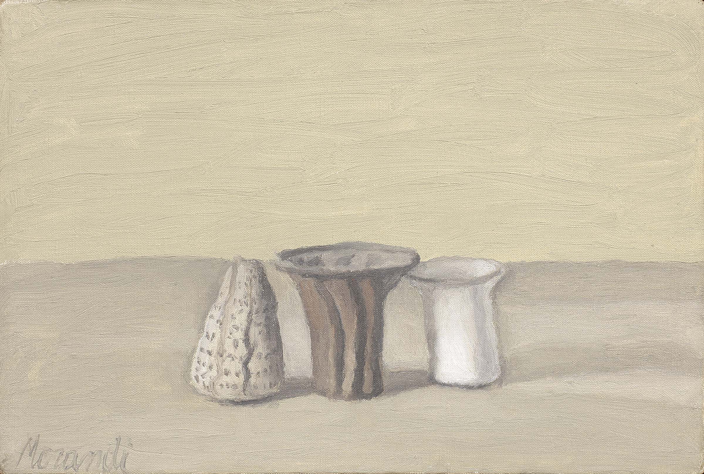Giorgio Morandi Bologna 1890 - 1964 Natura morta, 1955 Olio su tela, cm. 20,5x30,5 Firma in basso a sinistra: Morandi. Al verso sulla tela: timbro Galleria Annunciata, Milano; sul telaio: etichetta e timbro Galleria del Milione, Milano, con n. 7078: timbro Galleria Lorenzelli, Bergamo; sulla cornice: etichetta Galleria d'Arte Rizziero, Teramo. Storia Galleria del Milione, Milano; Collezione L. Alloni, Torino; Collezione Del Fante, Milano; Galleria Annunciata, Milano; Collezione Colombo Ricci, Firenze; Collezione O. Zamattei, Milano; Galleria d'Arte Rizziero, Teramo; Collezione privata Esposizioni IX Quadriennale d'Arte Nazionale, Roma, 1965-66, cat. n. 4. Attestato di libera circolazione. Free export licence. Bibliografia Lamberto Vitali, Morandi. Catalogo generale, volume secondo, 1948-1964, seconda edizione, Electa Editrice, Milano, 1983, n. 939.