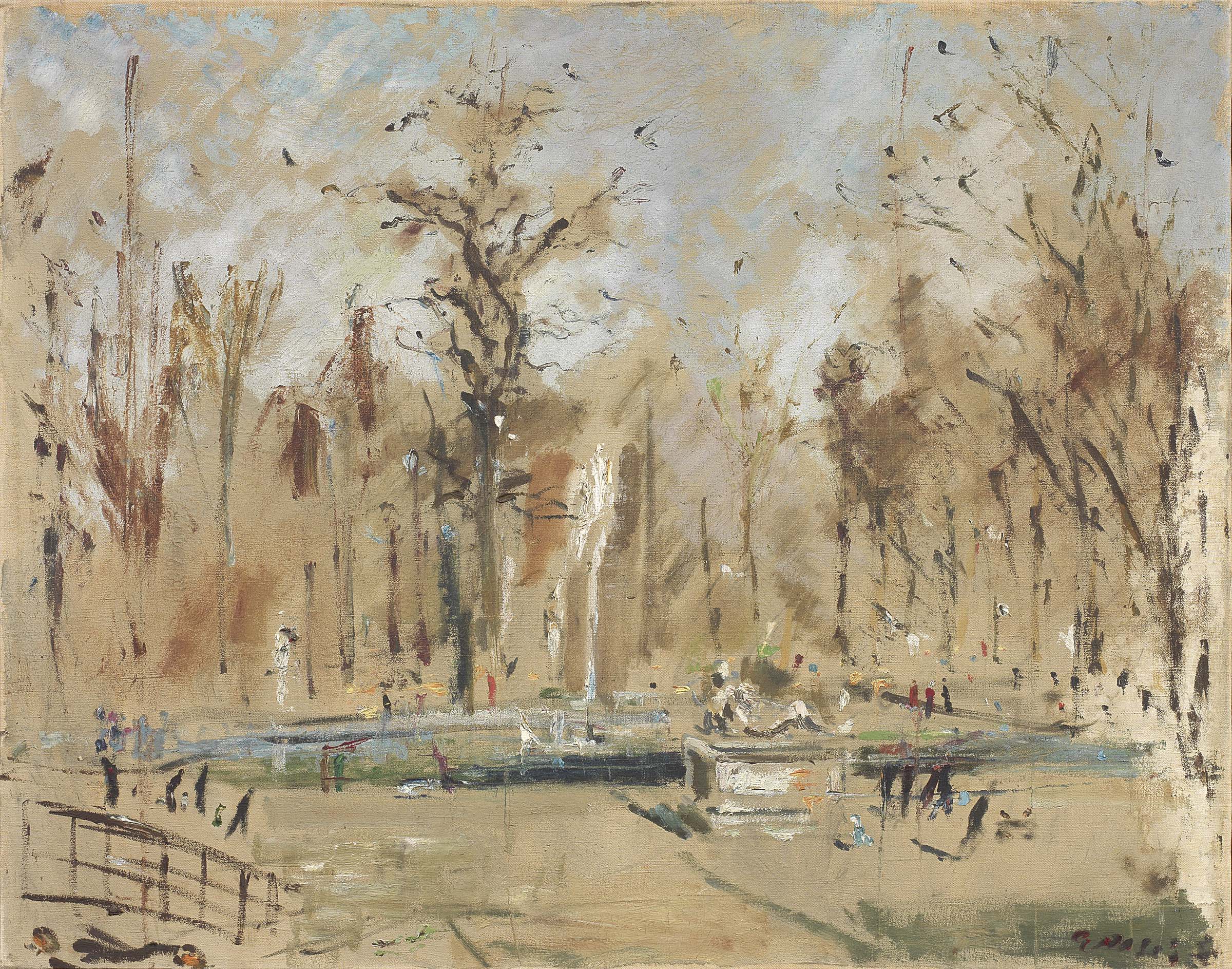 Filippo de Pisis Ferrara 1896 - Milano 1956 Veduta di parco parigino, 1937-38 Olio su tela, cm. 73x92 Firma in basso a destra: de Pisis. Certificato Associazione per Filippo de Pisis, Milano, 11 giugno 2013, con n. 04179.