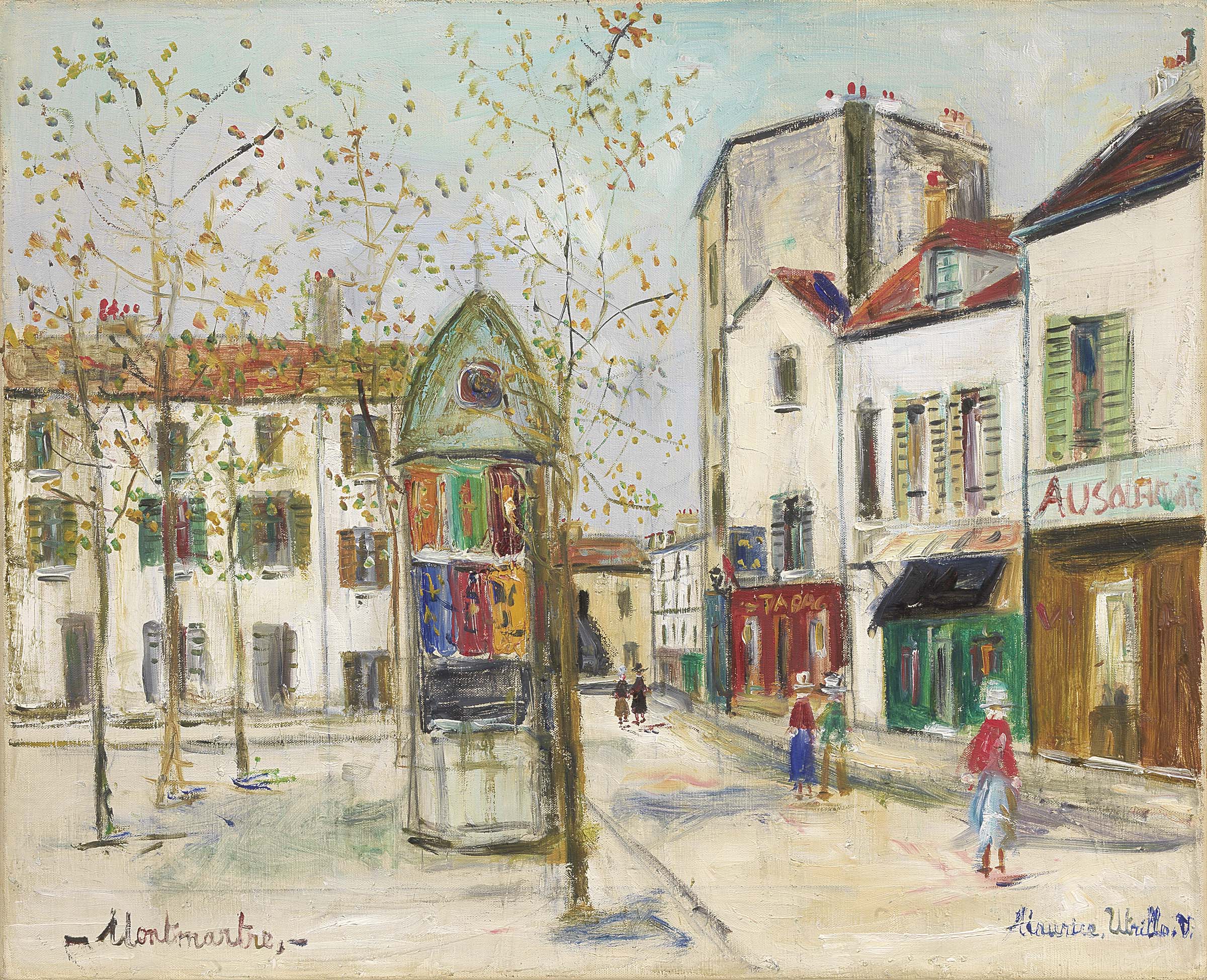 Maurice Utrillo Parigi 1883 - Dax 1955 Place du Tertre a Montmartre, 1940 ca. Olio su tela, cm. 50x61 Firma in basso a destra: Maurice Utrillo V, in basso a sinistra: Montmartre. Al verso sul telaio: etichetta Acquavella Galleries, New York: etichetta Nicholas M. Acquavella / Galleries, New York: etichetta Galerie Paul Pétridès, Parigi. Storia Collezione privata, Parigi; Collezione Sasso, Milano; Collezione privata Certificato su foto di Paul Pétridès, Parigi, 23 ottobre 1961. Bibliografia Paul Pétridès, L'oeuvre complet de Maurice Utrillo, tomo III, Paul Pétridès éditeur, Paris, 1969, p. 252, n. 2056.