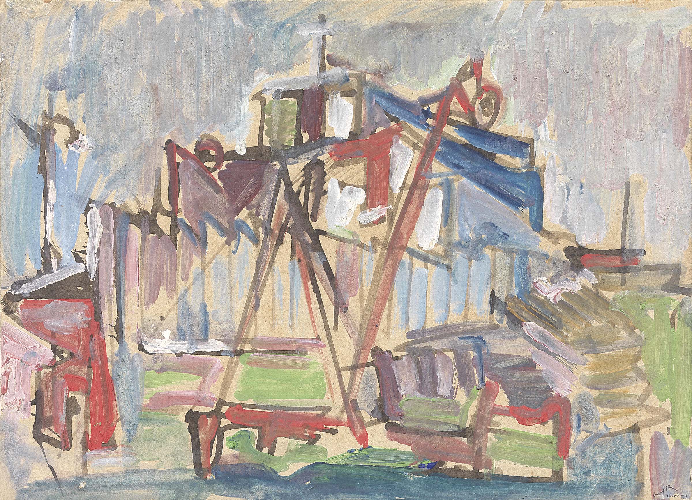 Emilio Vedova Venezia 1919 - 2006 Senza titolo, 1946 Tempera su carta applicata su tela, cm. 26x36 Firma e data in basso a destra: Vedova 1946. Foto autenticata dall'artista, in data 29-6-69, con timbro Emilio Vedova / Archivio - Venezia, con n. 336.