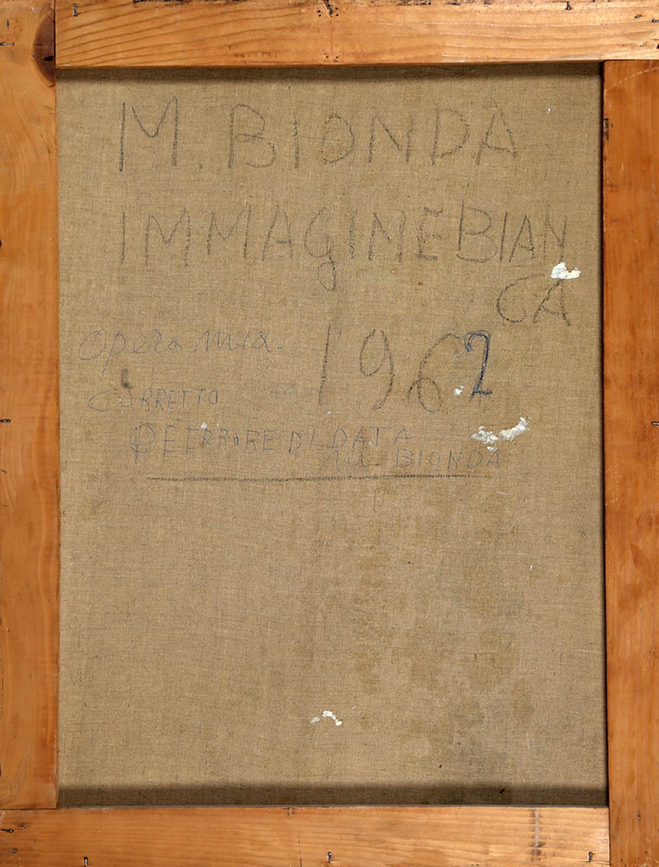 MARIO BIONDA 1913 - 1985 " Immagine bianca ", 1962 Tecnica mista e olio su carta telata, cm. 72 x 56 Firmato e datato sul retro Prov. Collezione Privata