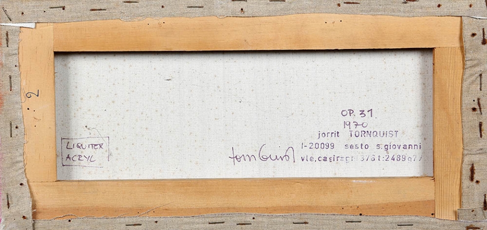 JORRIT TORNQUIST 1938 " OP. 31 ", 1970 Acrilico su tela, cm. 20 x 40 Firmato e datato sul retro Timbro dell'artista sul retro Prov. Collezione Privata