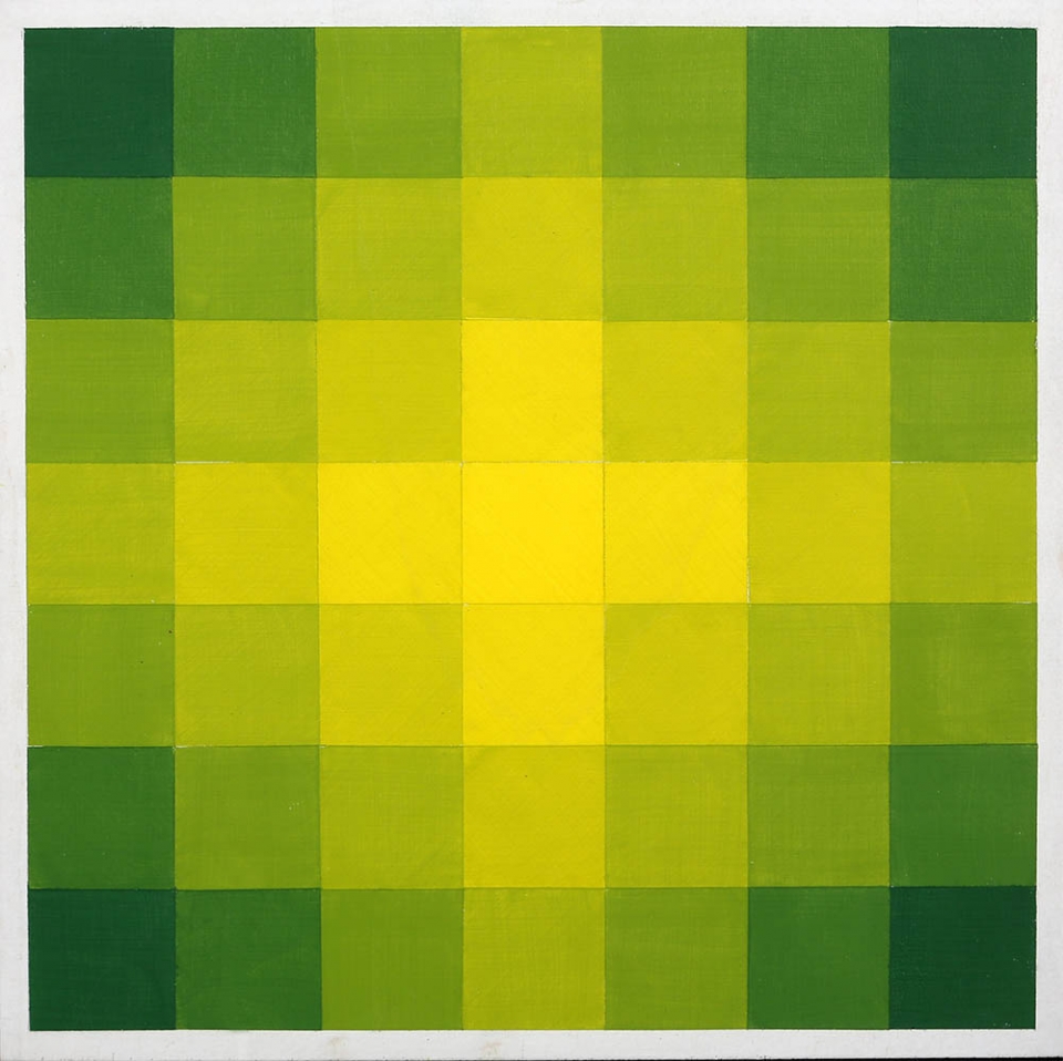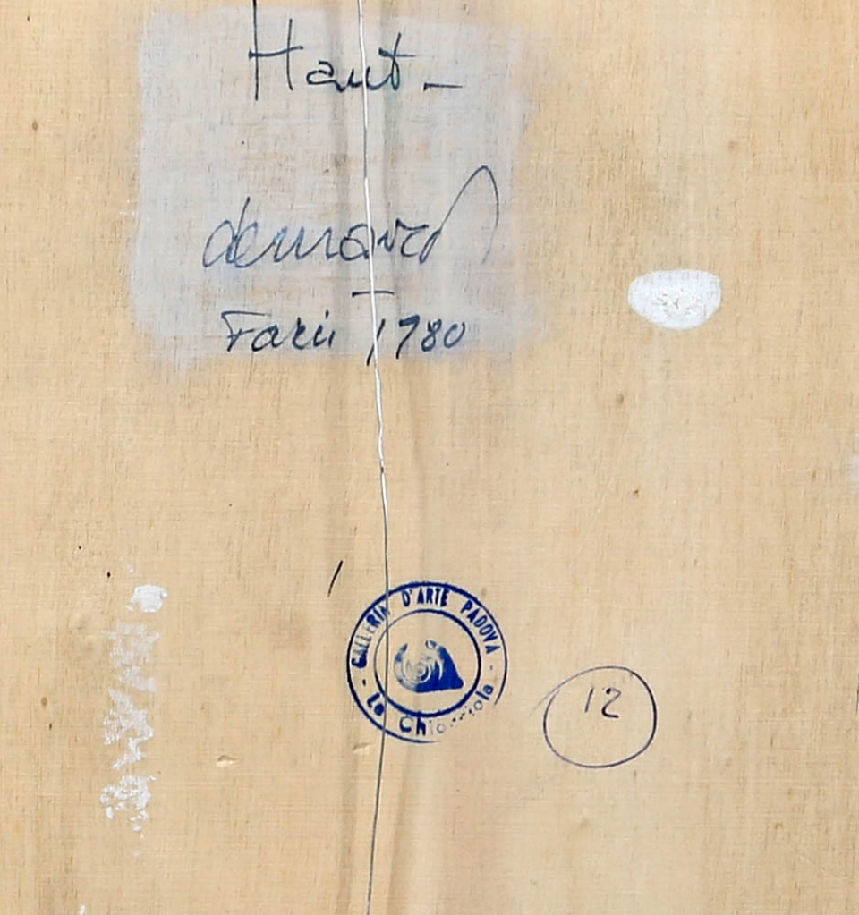 HUGO DEMARCO 1932 - 1995 Senza titolo, 1980 Olio su tavola, cm. 37,5 x 37,5 Firmato e datato sul retro Autentica dell'artista su fotografia L'opera presenta un leggero alone nella parte centrale Prov. Collezione Privata
