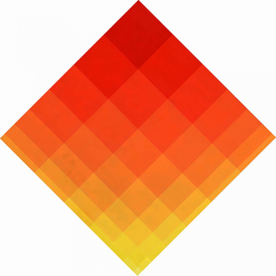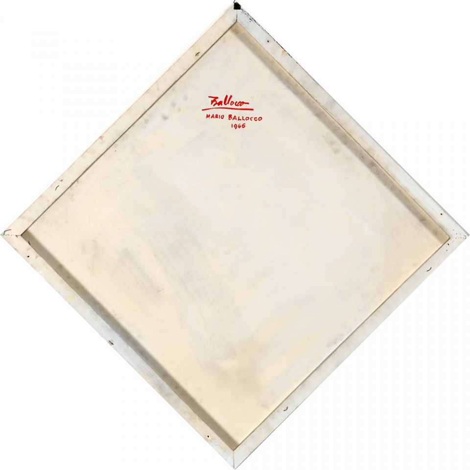 MARIO BALLOCCO 1913 - 2008 " Gradazioni modulari di chiarezze ", 1966 Olio su tavola, cm. 70 x 70 (lato) Firmato e datato sul retro Autentica dell'artista su fotografia Timbro Brerarte srl, Milano su fotografia Prov. Collezione Privata