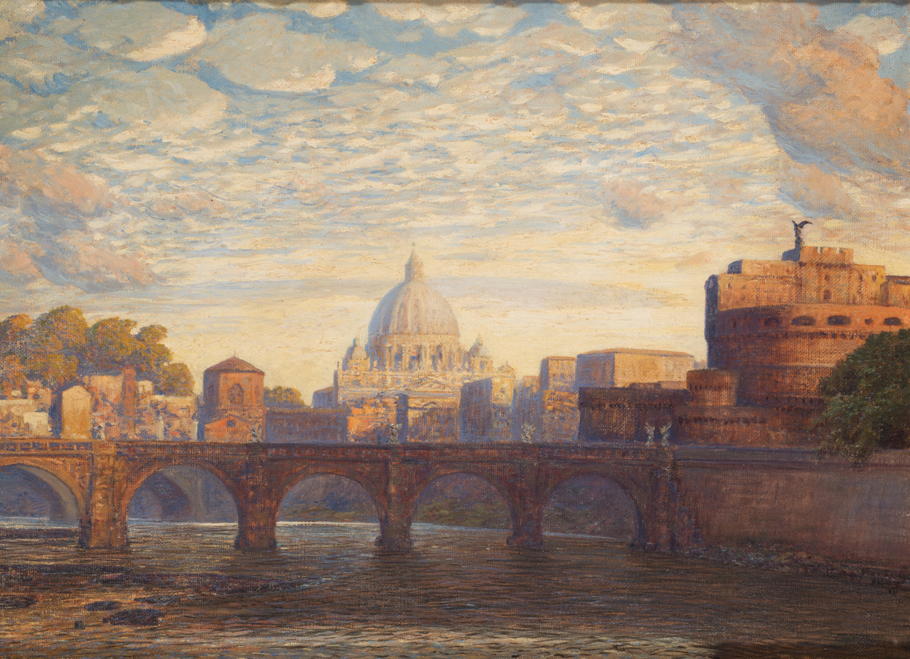 Max Roeder (Gladbach, 1866 – Roma, 1941) Castel Sant' Angelo, Roma olio su tela, cm 56x74 firmato e datato Max Roeder '14 in basso a destra