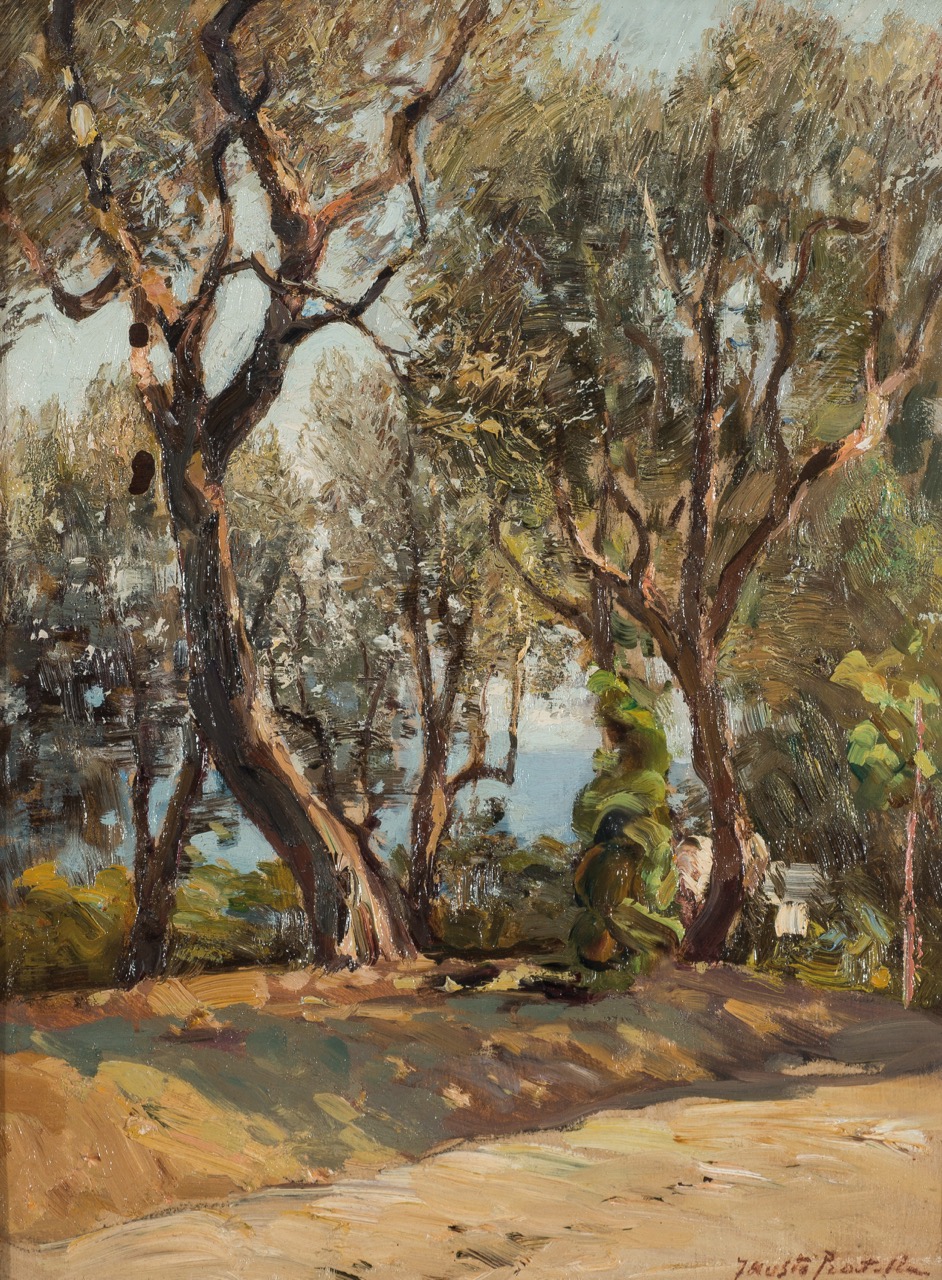 Fausto Pratella (Napoli 1888-1964) Ulivi olio su tavola, cm 40x30 firmato Fausto Pratella in basso a destra