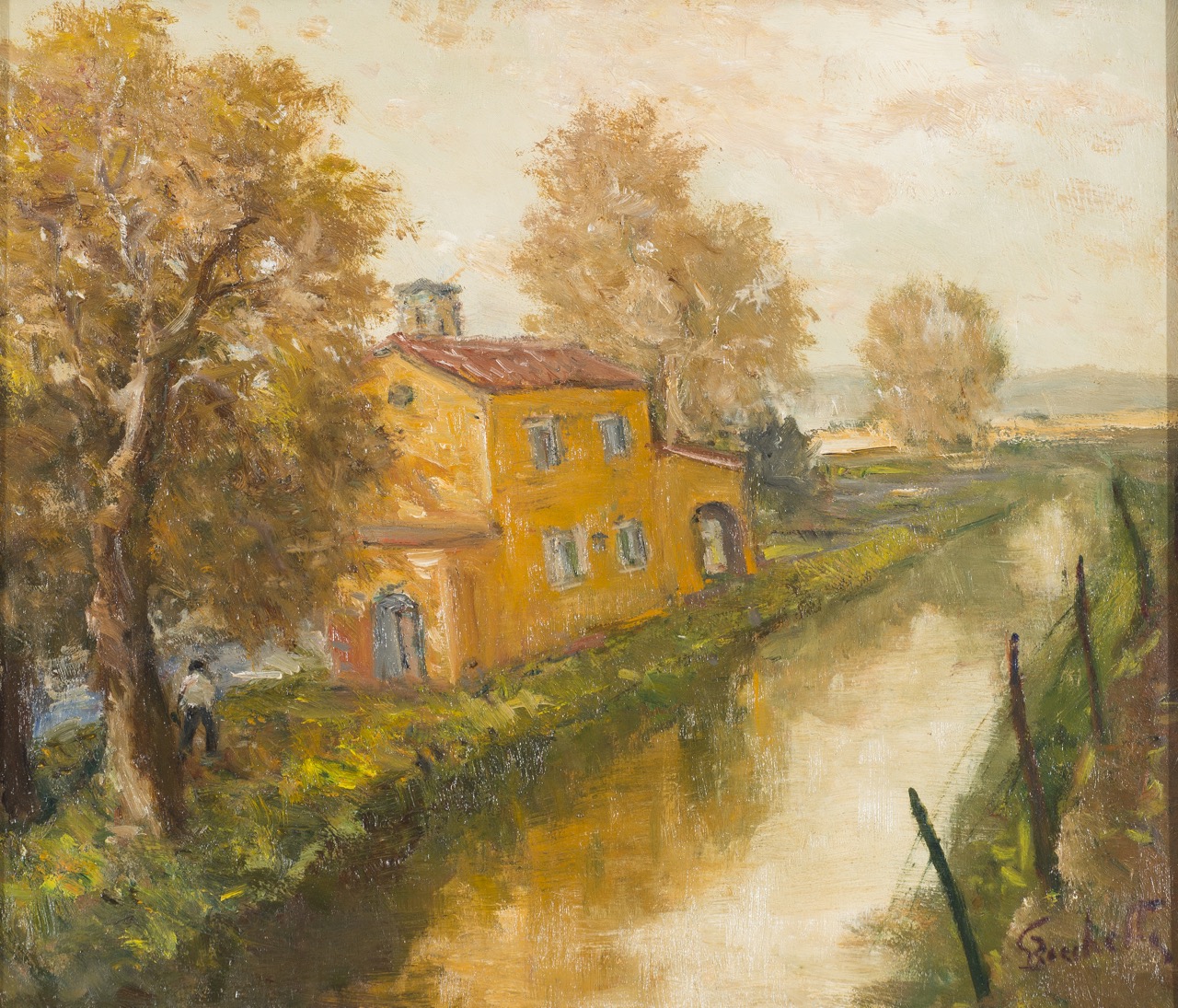 Gaetano Bocchetti (Napoli,1888-1990) Case olio su tavola, cm 37x40 firmato G....