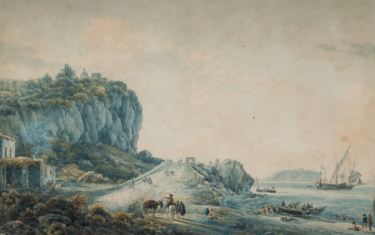 attribuito a Louis Ducros (Moudon, 1748- Losanna, 1810) Veduta di Nisida dal litorale di Pozzuoli acquerello su carta con lieve traccia di delineato, cm 31x48