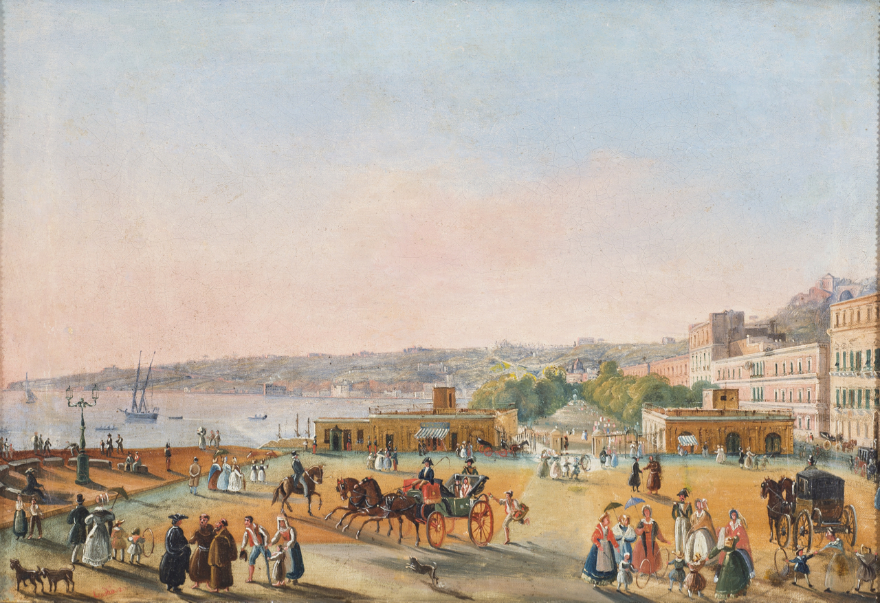 Salvatore Candido (Documentato a Napoli tra il 1814 ed il 1869) La Villa Reale olio su tela, 27X40 firmato Candido in basso a sinistra Provenienza: Roma collezione privata già Milano, asta Sotheby's MI0283 del 19 dicembre 2007 Dipinti e Sculture XIX-XX secolo,