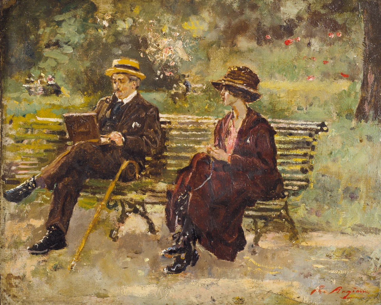 Raffaele Ragione (Napoli, 1851 - 1919) Giornata d' Autunno olio su tela,cm 32x40 firmato R. Ragione in basso a destra Bibliografia: Domenico e Pierluigi Di Giacomo in "Raffaele Ragione Impressionista napoletano", Napoli, 2007 pag. 91