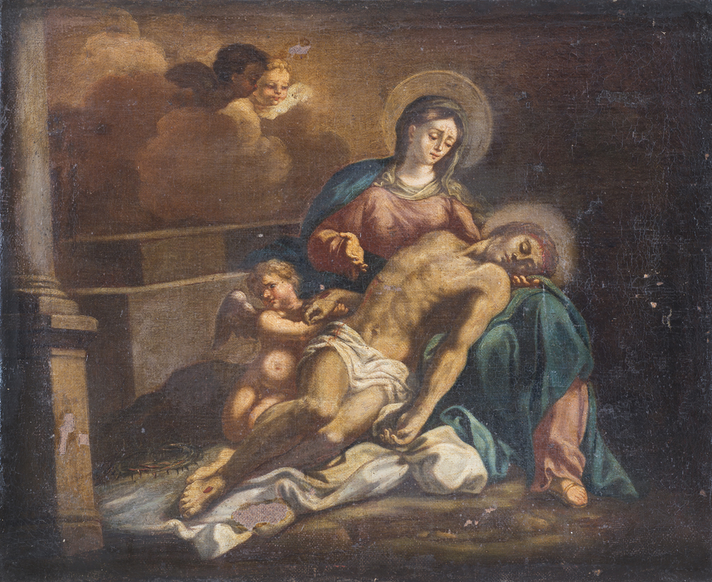 seguace di Francesco Trevisani Madonna con Cristo morente olio su tela, cm 50x63