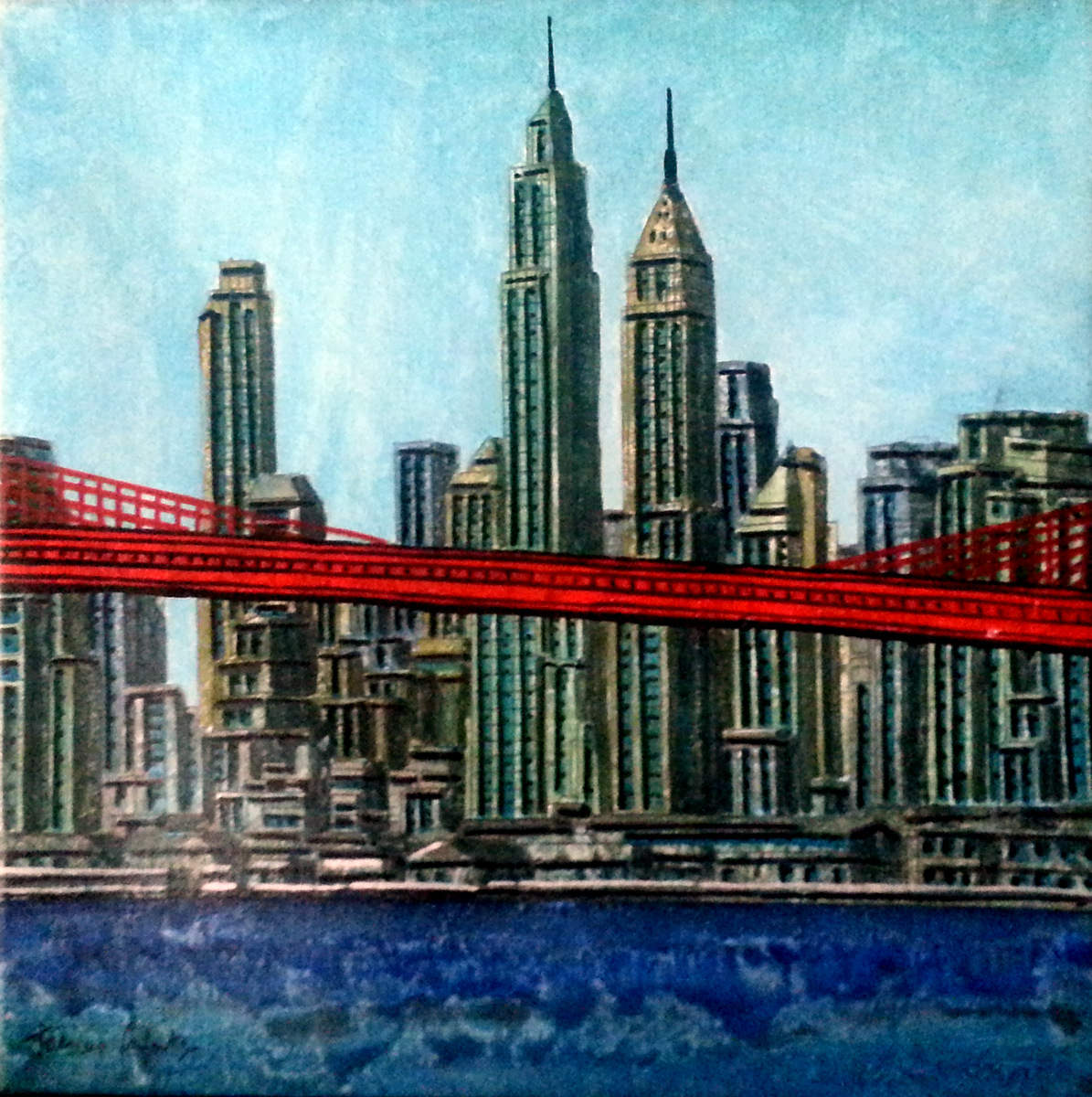 Tonino Caputo "Crossing the town" acrilici su tela cm 25x25 Autentica su foto...