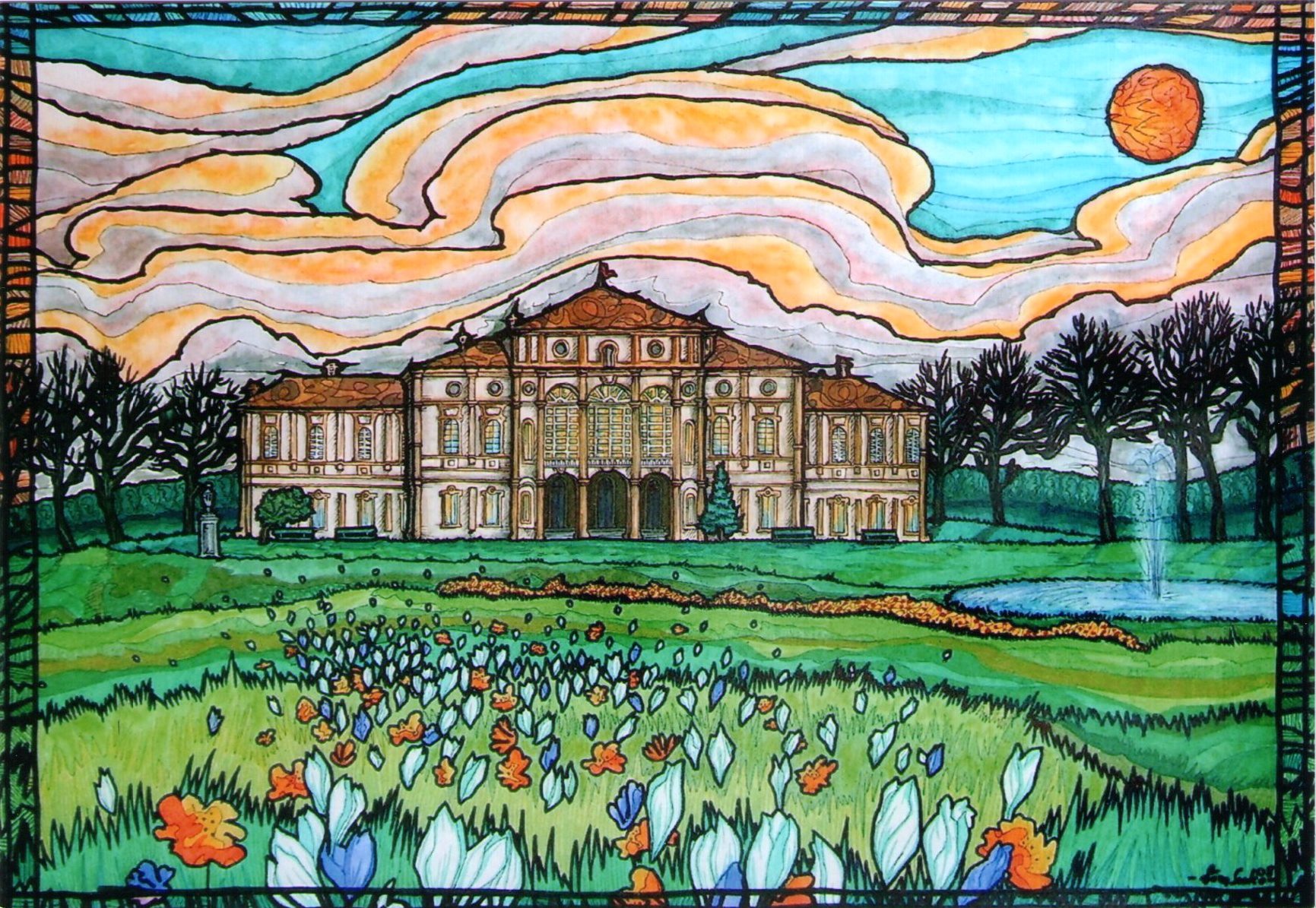 Sara Scalco "Tesoreria all'alba" 2008 China e pennarello su cartone telato cm 40x60 firma, luogo, data ed autentica sul retro, con autentica e datazione su foto del maestro, con cornice dell'artista