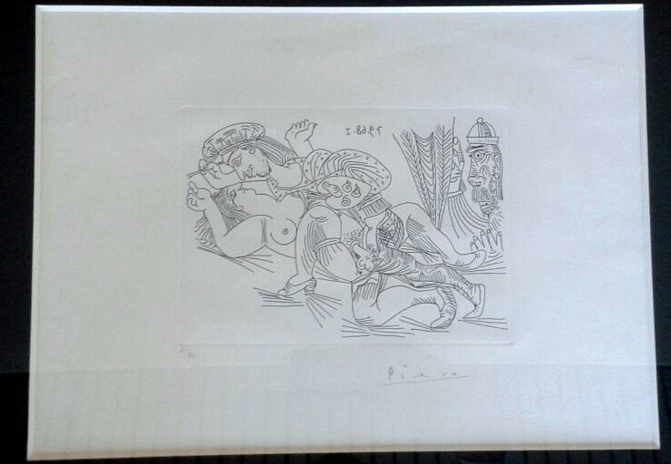 Pablo Picasso "Amanti"1968 incisione su carta arches cm 24x37.opera firmata...