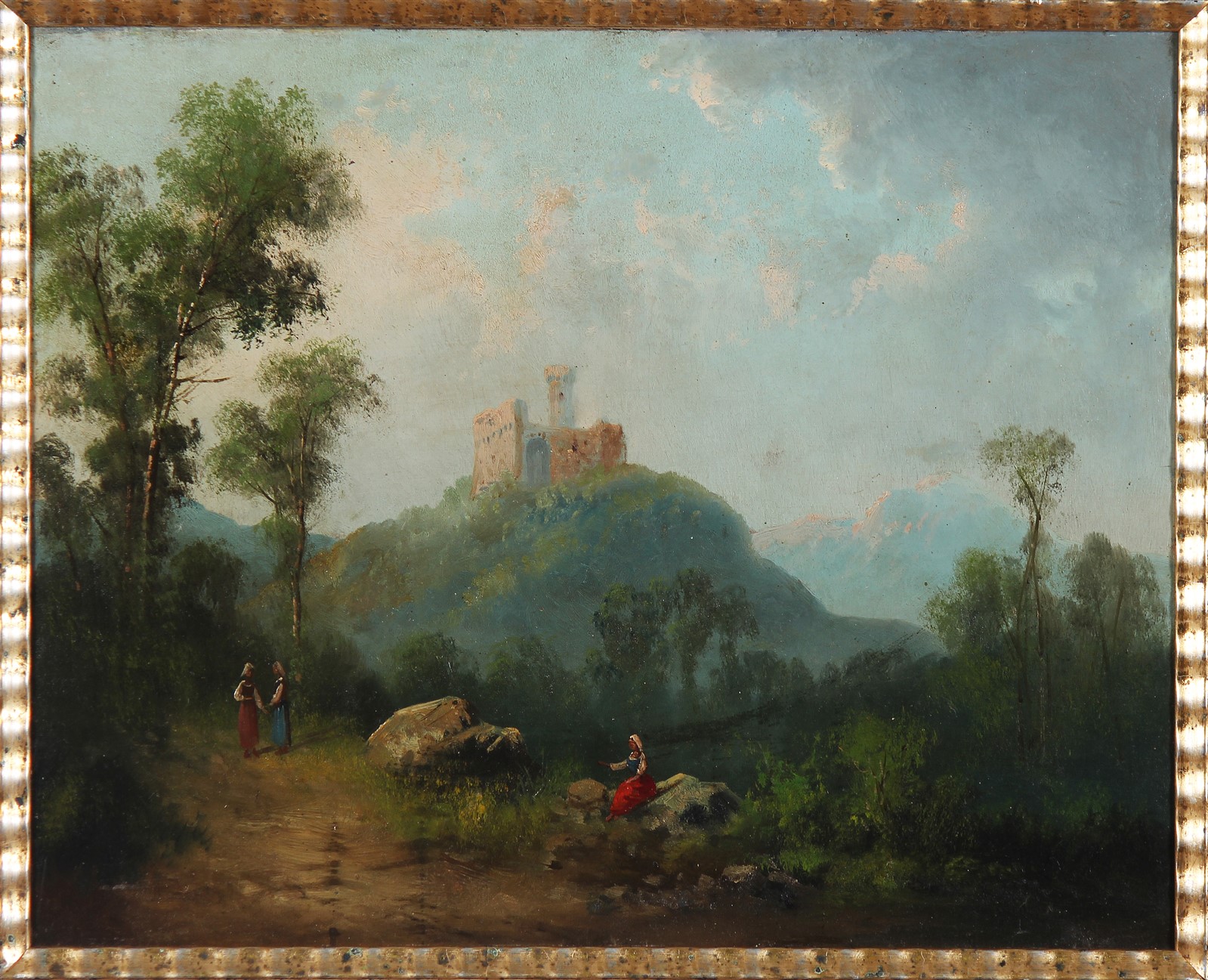 PITTORE ITALIANO DEL XIX SECOLO Coppia di paesaggi con figure. Olio su tela ....