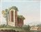 PHILIPP HACKERT Ambiente di. Paesaggio con personaggi. Olio su tela . Cm 60,50 x 47,00. L'opera presenta delle mancanze di colore in alto a sinistra e in basso, la tela presenta segni di crachelatura.