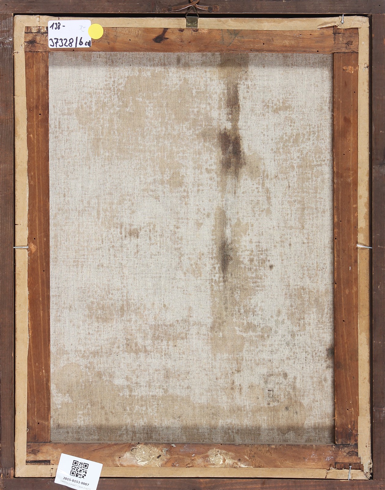 BIGARI VITTORIO MARIA (1692 - 1776) Ambiente di. Notturno con architetture e personaggi. Olio su tela . Cm 44,00 x 57,00. . Cornice presente