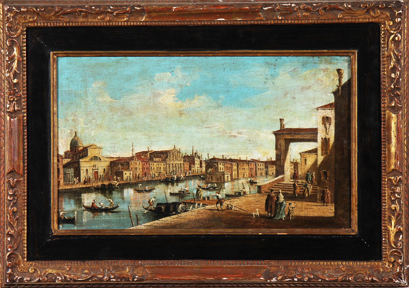 GUARDI GIACOMO (1764 - 1835) NELLO STILE DI. Canale veneziano. Olio su tela . Cm 44,00 x 27,00. . Cornice presente