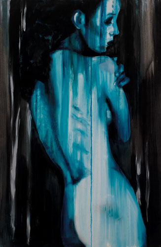FABIO GIAMPIETRO Milano 1974 Donna caschetto, 2002 tecnica mista su tela cm. 150x100, firma in basso a destra, firma, anno ed etichetta della Transit Artist Management al retro, opera senza cornice.
