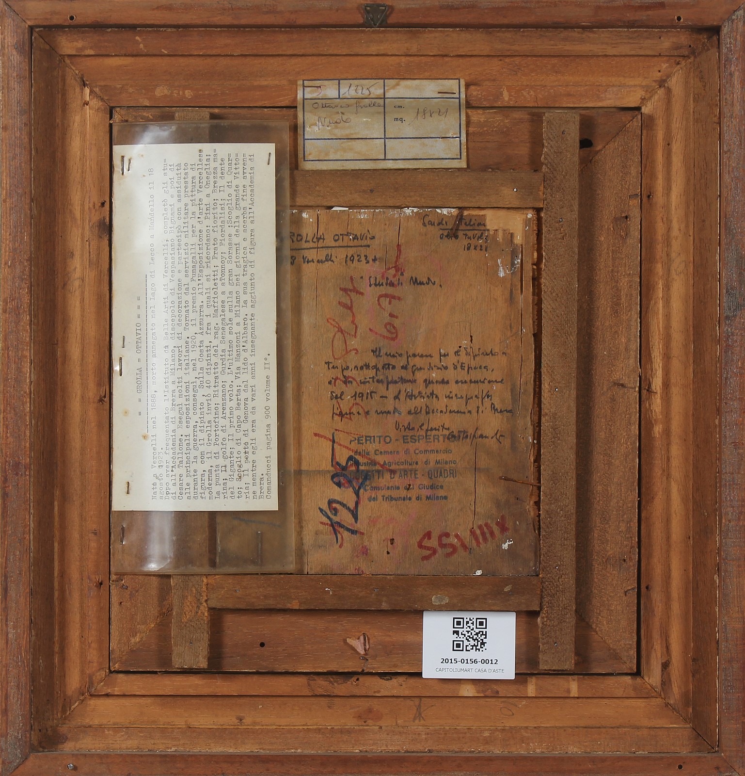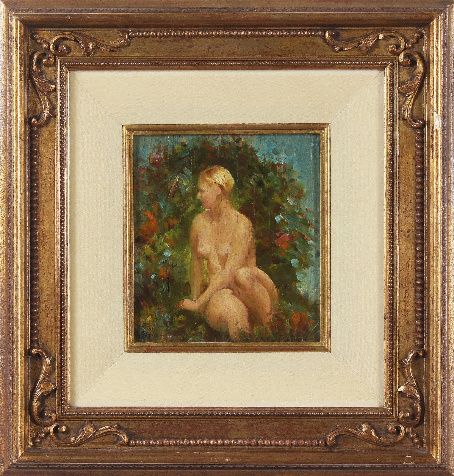 GROLLA OTTAVIO (1888 - 1923) Nudo in un paesaggio. Olio su tavola. Cm 21,00 x 18,00. Firma in basso a sinistra. . Cornice presente