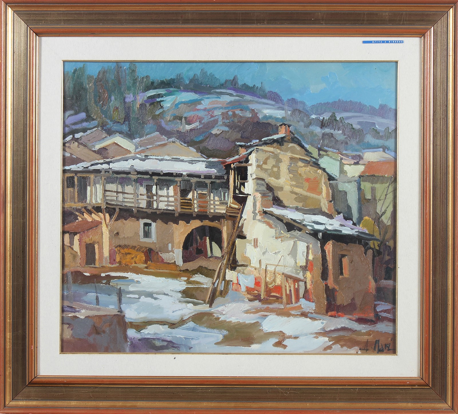 Lot 157 | MARI ALDO (1913 - 1988) Paese. Olio su tela . Cm 66,00 x 76,00. Firma in...