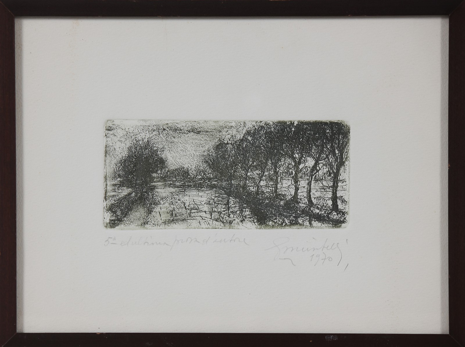 MUSITELLI GIULIO VITO (1901 - 1990) Senza titolo. 1970. Acquaforte. Cm 14,50 x 6,50. Quinta edizione prova d' autore. Firma e data a matita in basso a destra. Cornice presente