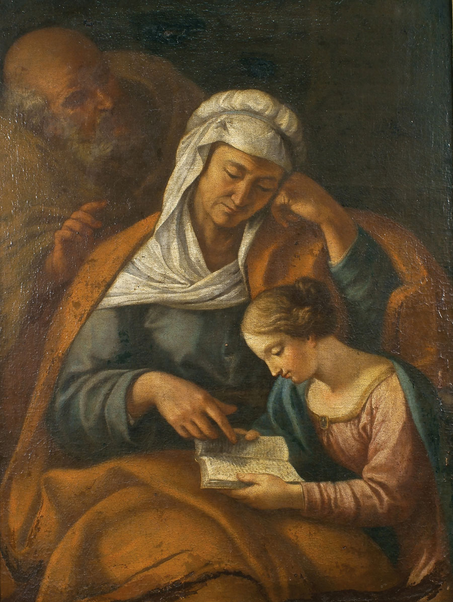 SCUOLA ROMANA XVIII Sec. "La lettura di Maria", olio su tela, entro cornice...