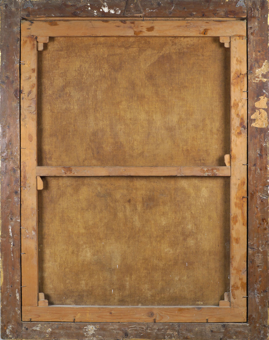 SCUOLA ROMANA XVIII Sec. "La lettura di Maria", olio su tela, entro cornice coeva in legno dorato, restauri e cadute di colore ROMAN SCHOOL 18th century "Reading Mary", oil on canvas, with coeval framework, restorations and lacks of color 114x85 cm.