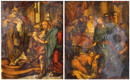 SCUOLA ITALIANA XIX Sec. "Scene dalla passione di Cristo", coppia di dipinti...