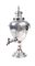 SAMOVAR IN METALLO ARGENTATO XX Sec. inciso a motivi floreali e di volute, prese laterali a foggia di leoni A SILVERED METAL SAMOVAR 20th century Floral and scroll-shaped engravings, lion-shaped handles h. 47 cm.