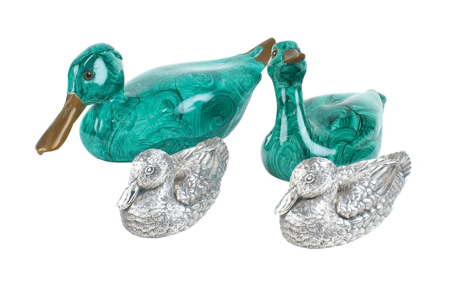 DUE COPPIE DI PAPERE fogge, materiali e misure diverse, difetti TWO PAIRS OF DUCKS Different dimensions and materials, defects