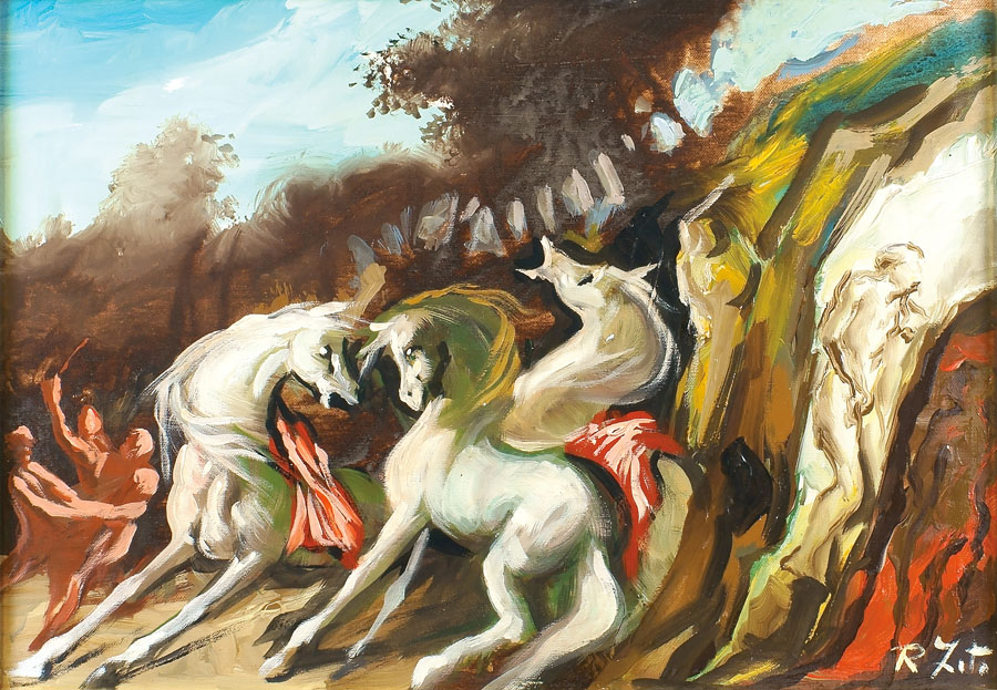 RODOLFO ZITO Molochio 1924 - Roma 1995 "Nuclei", olio su tela, anno 1992, firmato in basso a destra, entro cornice RODOLFO ZITO Molochio 1924 - Rome 1995 "Nuclei", oil on canvas, signed and dated 1992 (lower right), framed 50x70 cm.